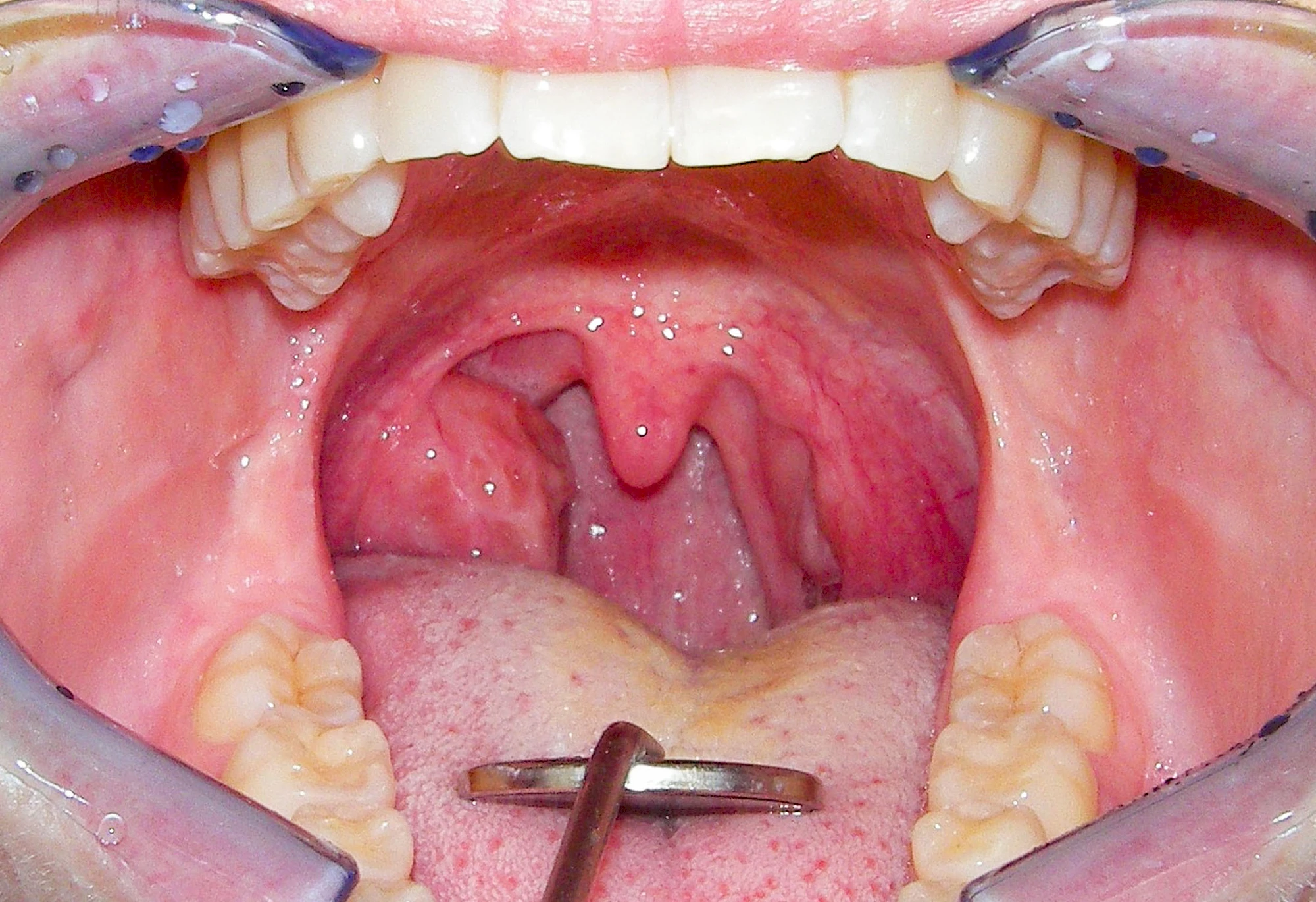 - Entzündungen: Rötungen bzw. Schwellungen der Gaumen- bzw. der Rachenmandeln
