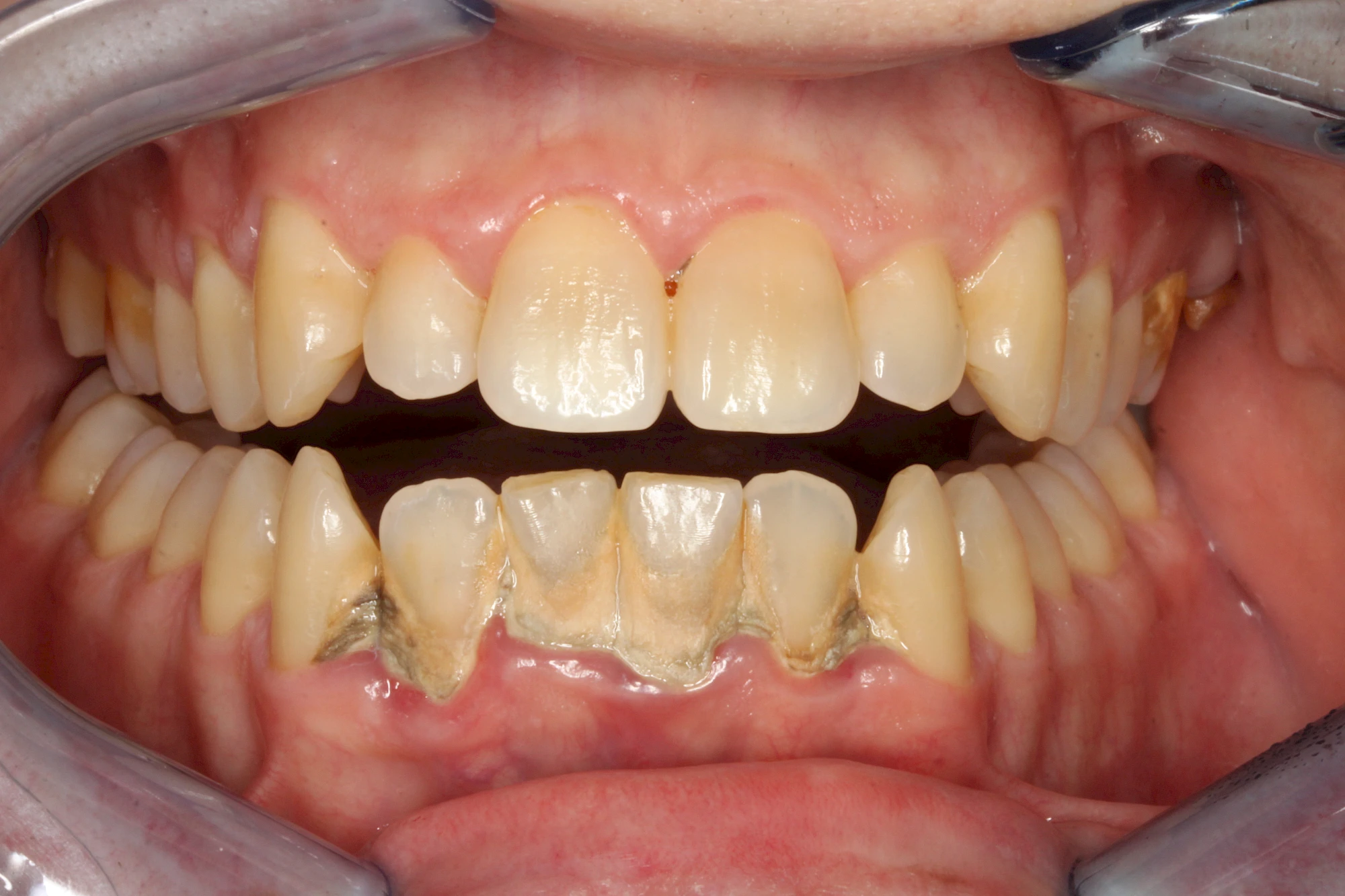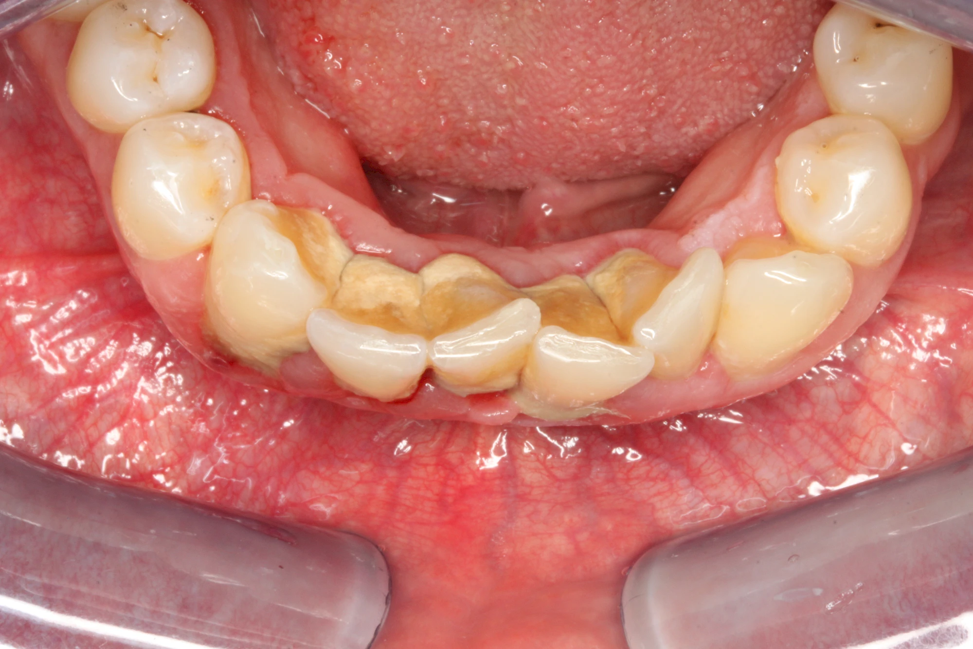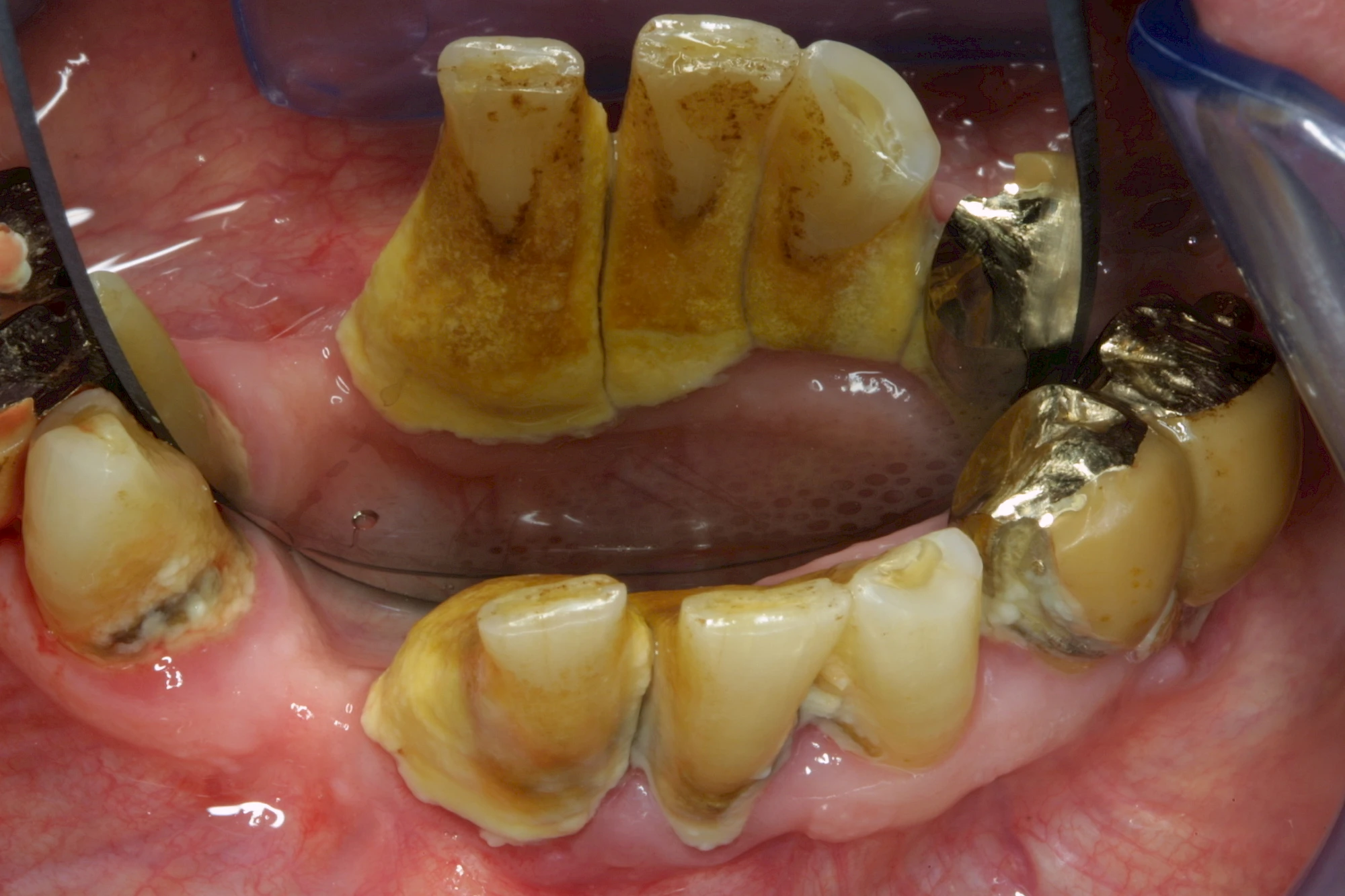 - An den Innenflächen der Unterkiefer-Frontzähne