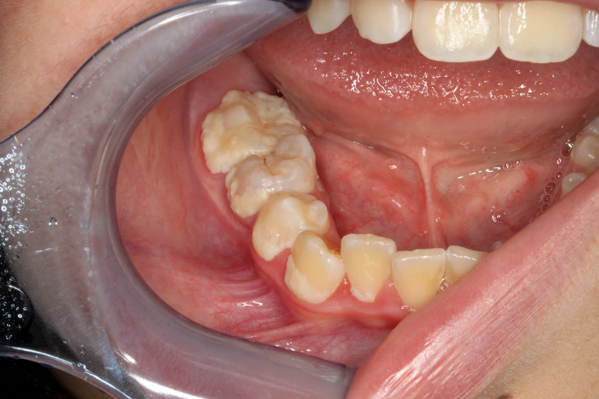 - An den Außenflächen der Oberkiefer-Molaren (Backenzähnen)