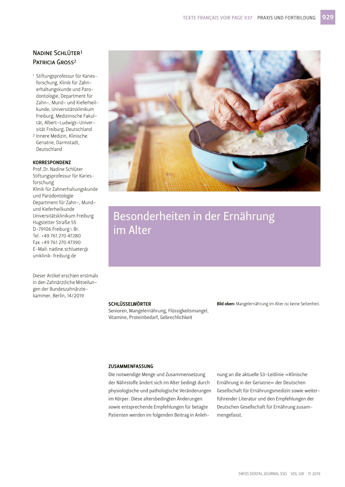 Im selben Jahr wurde der Artikel im Swiss Dental Journal SSO (Vol 129, 11/2019) veröffentlicht. Diese Veröffentlichung steht im ResearchGate als PDF-Aritkel auf Deutsch kostenfrei zum Download zur Verfügung.