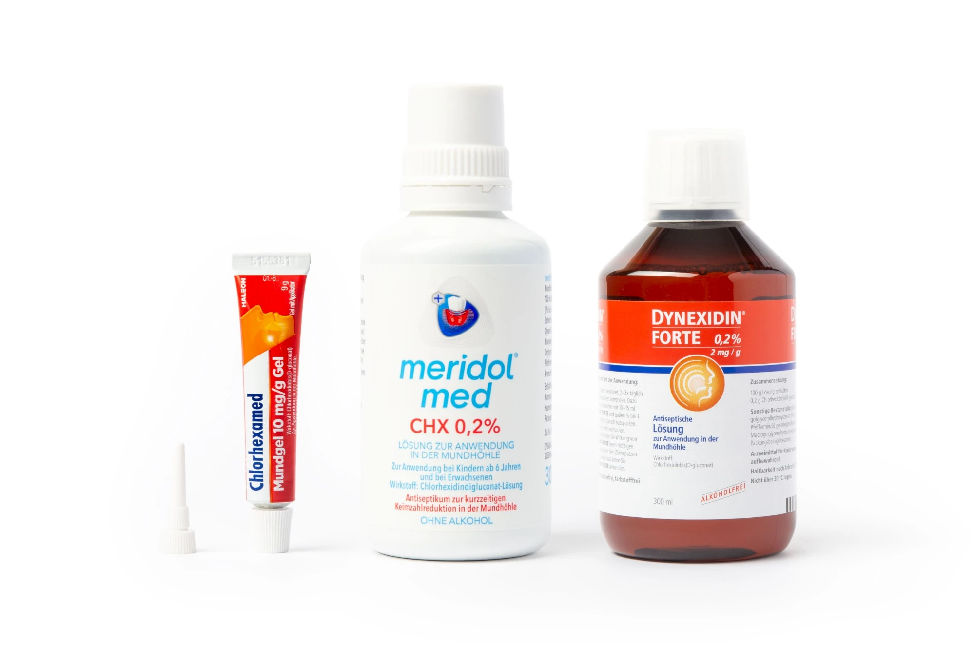 - Mundspüllösung bzw. Spray für die gesamte Mundhöhle