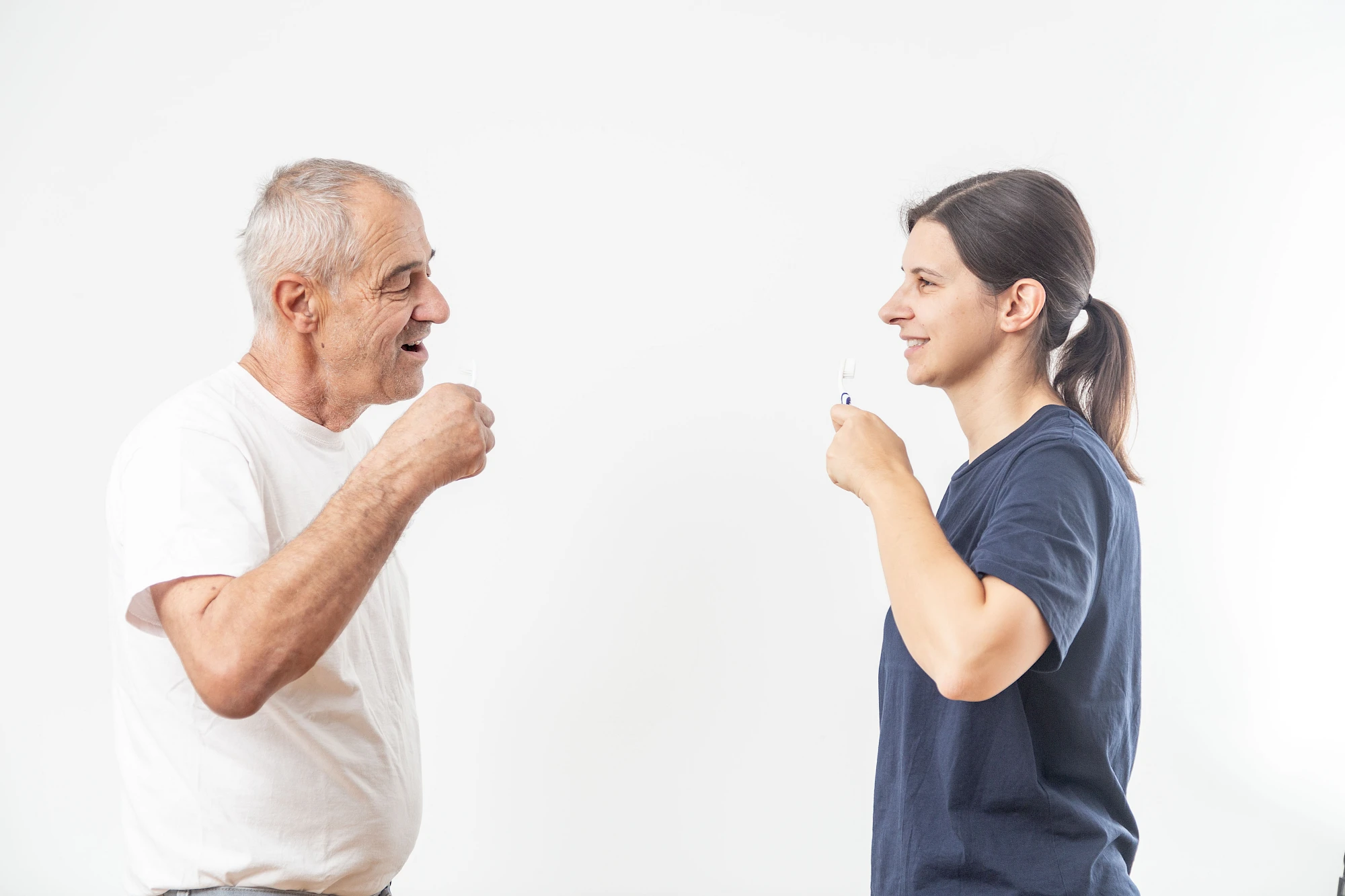 Positive Beziehung: Bauen Sie eine positive Beziehung zu der zu pflegenden Person auf (z. B. ein Kompliment über die Kleidung machen). Begleiten Sie die Maßnahmen der Mundpflege mit einfachen Worten.