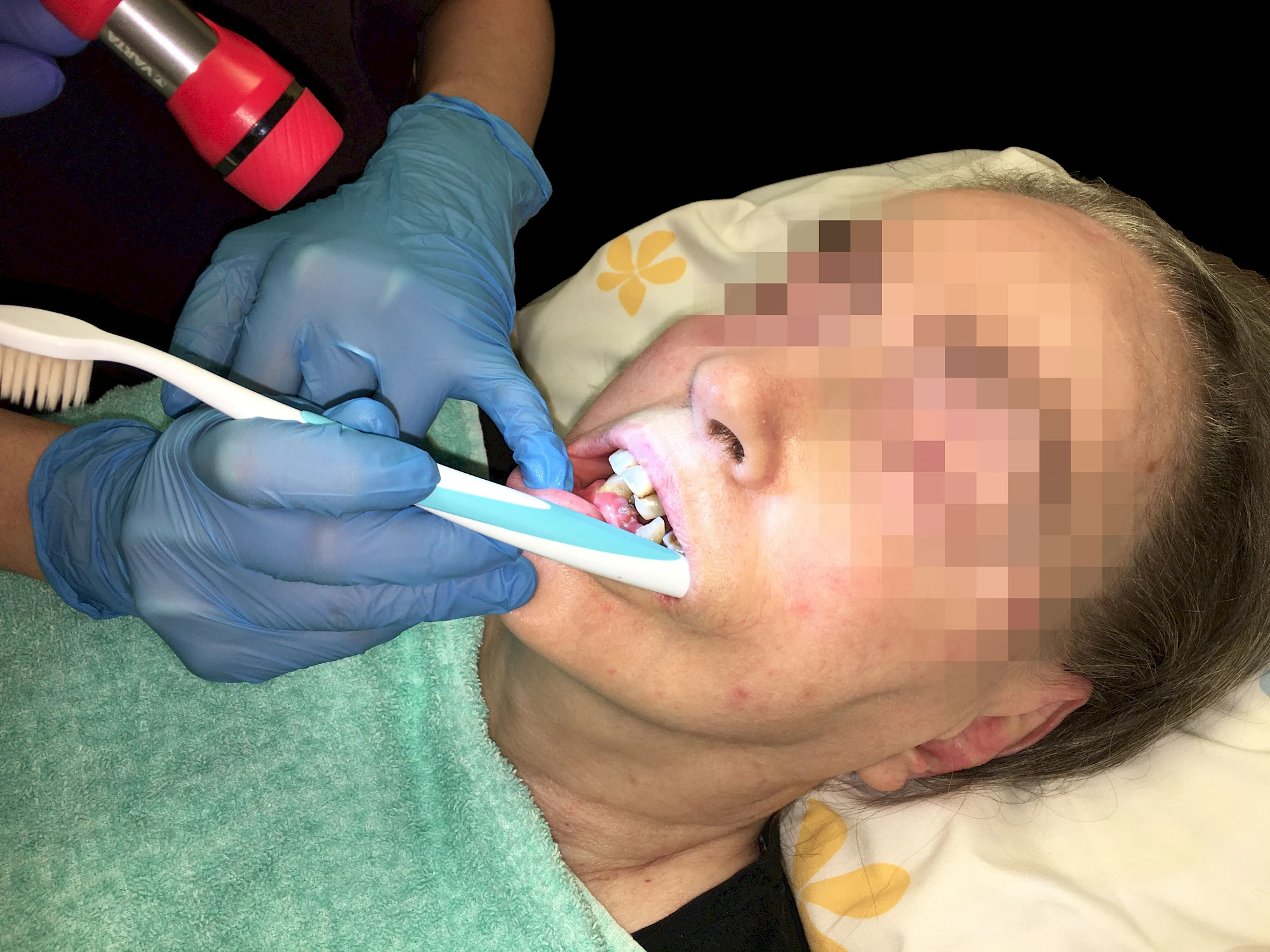 Neben der Mundhöhle gilt es auch, Zahnprothesen auf Beläge und mögliche Beschädigungen wie scharfe Kanten, Sprünge, Brüche, Absplitterungen, Abplatzungen oder Abnutzung zu überprüfen.