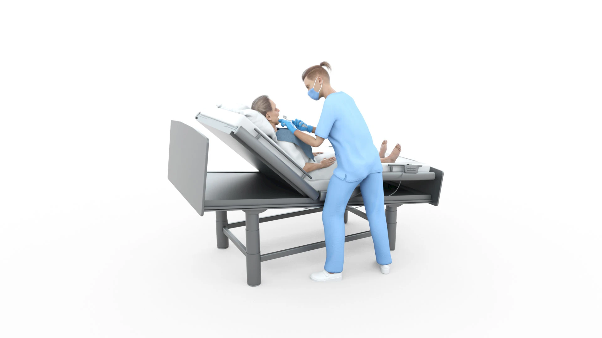 Im Bett ist der Kopf gut gelagert, weshalb die Mundpflege auch in den dargestellten alternativen Arbeitspositionen erfolgen kann.