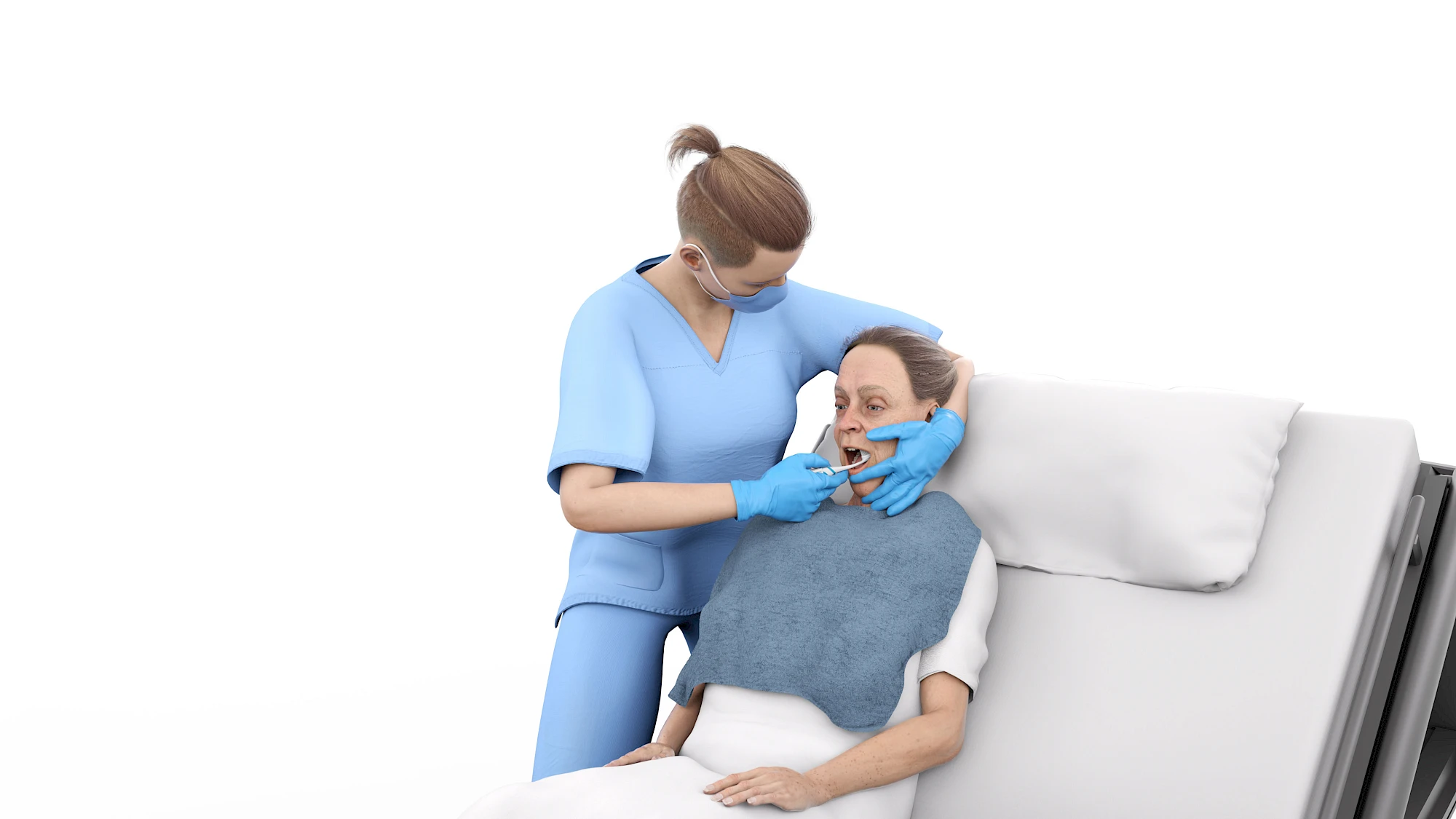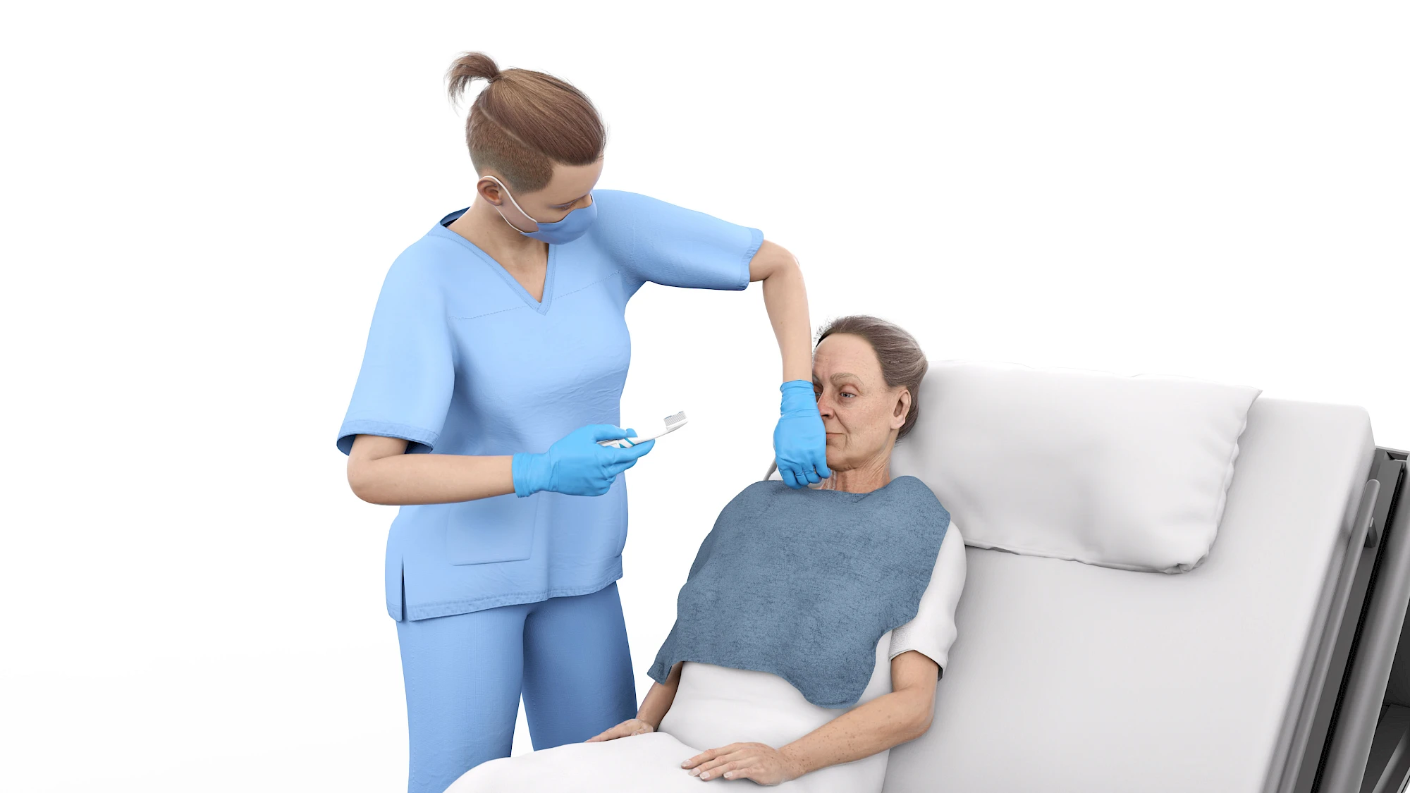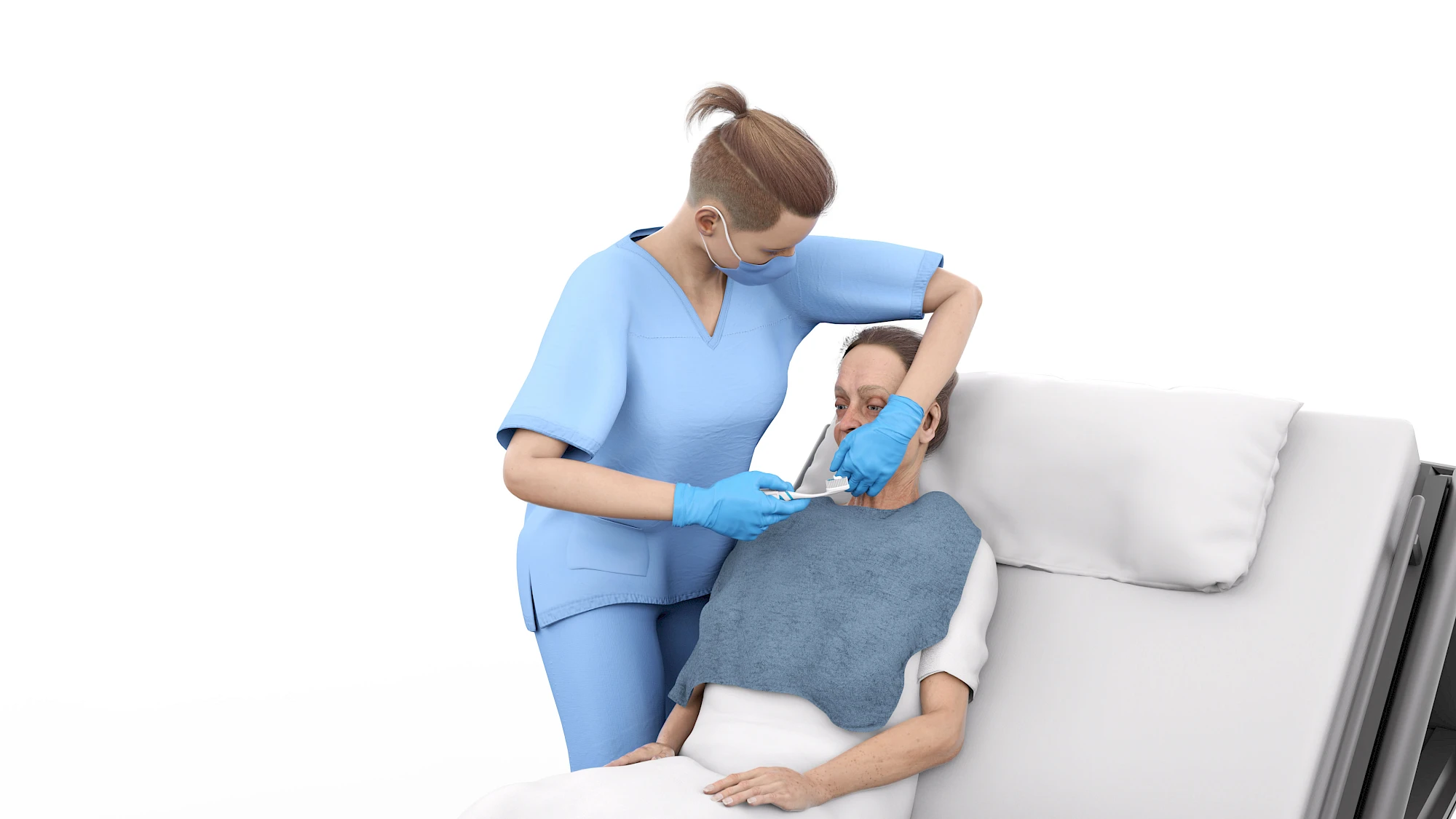Ist die Mundpflege z. B. aufgrund der eingeschränkten Mobilität nicht sitzend am Waschbecken möglich, so kann diese alternativ auch im Bett liegend erfolgen.