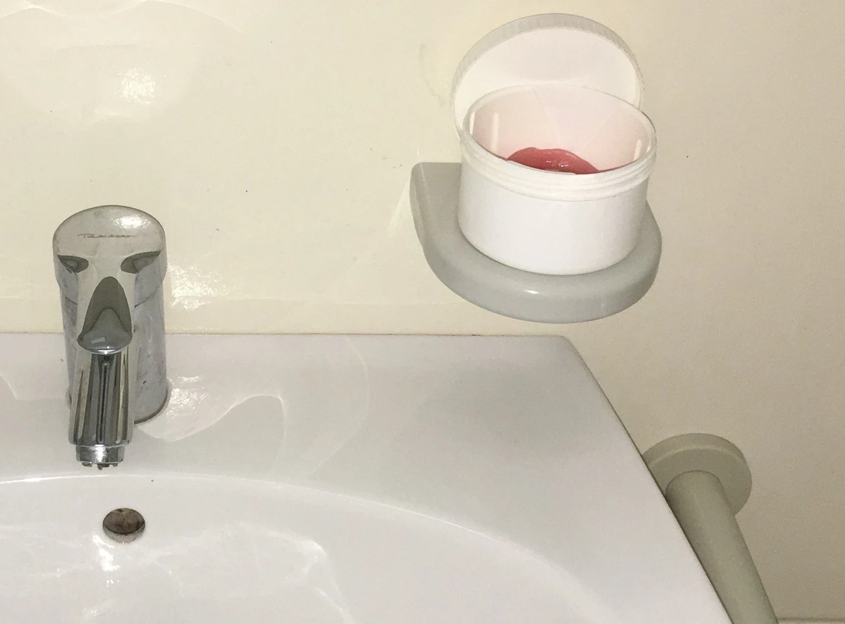 Idealerweise erfolgt die Mundpflege im Sitzen am Waschbecken auf einem Toiletten- oder Badstuhl, gegebenenfalls auch im Rollstuhl oder auf der Sitzfläche des Rollators.