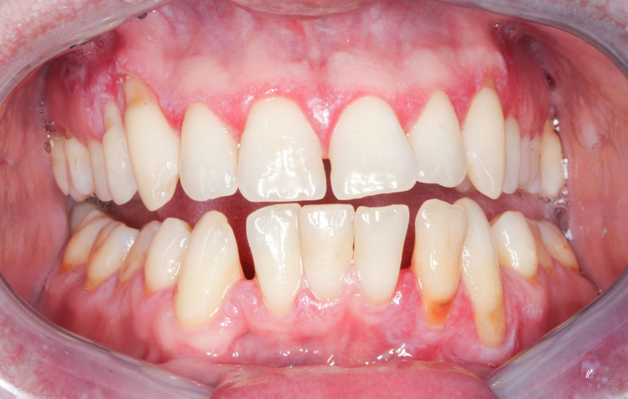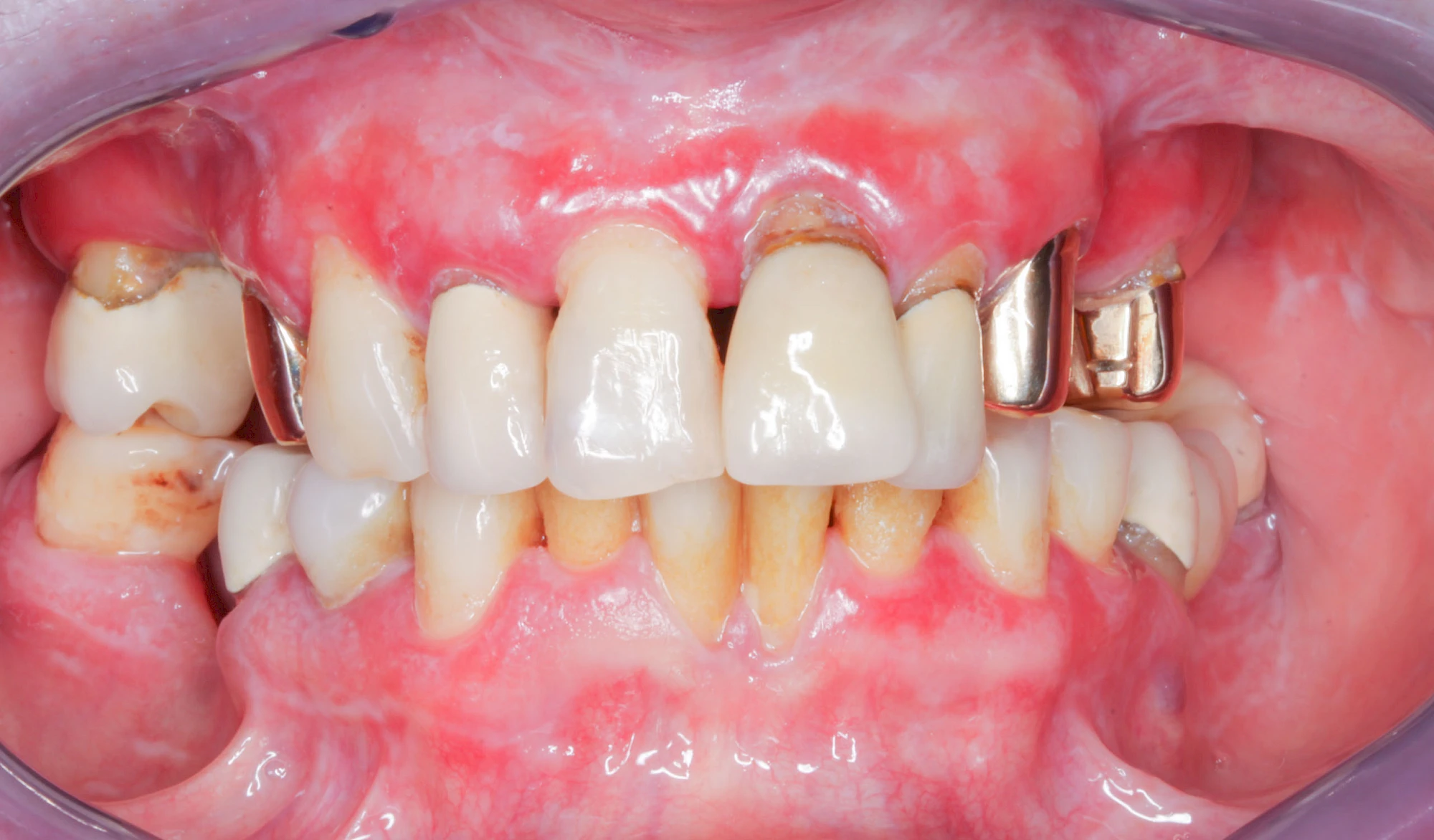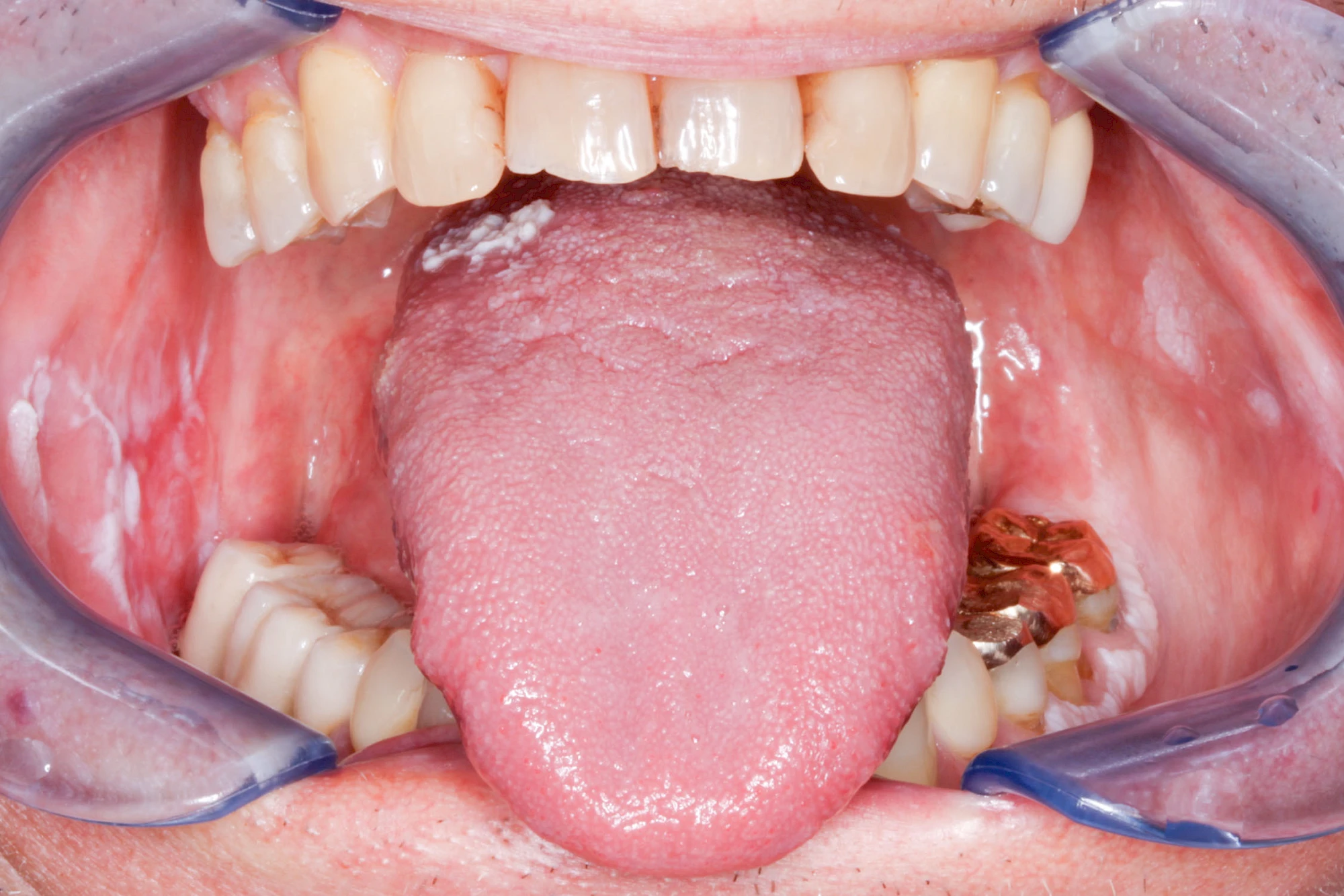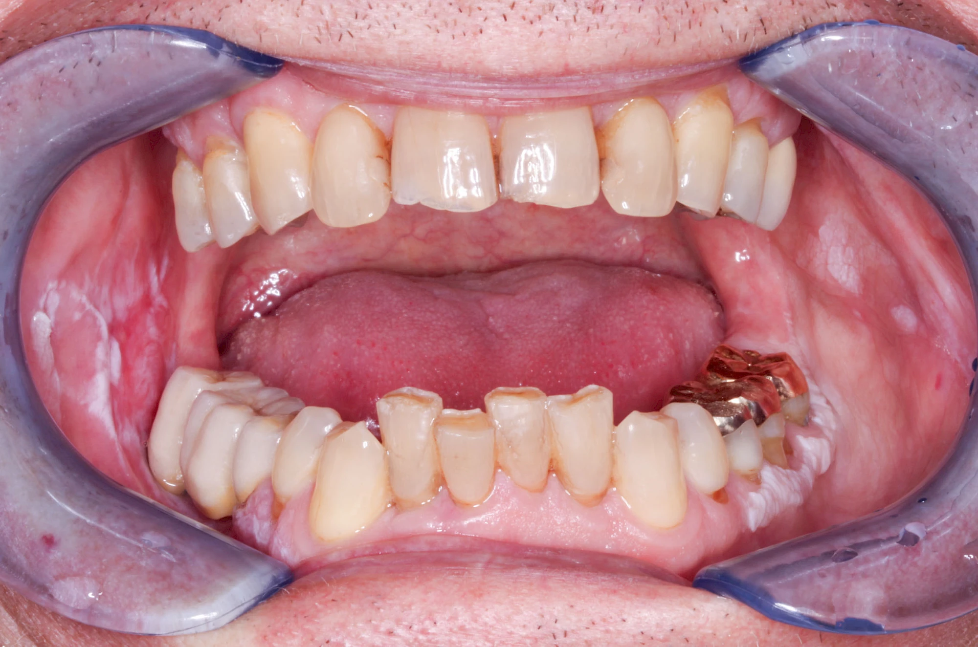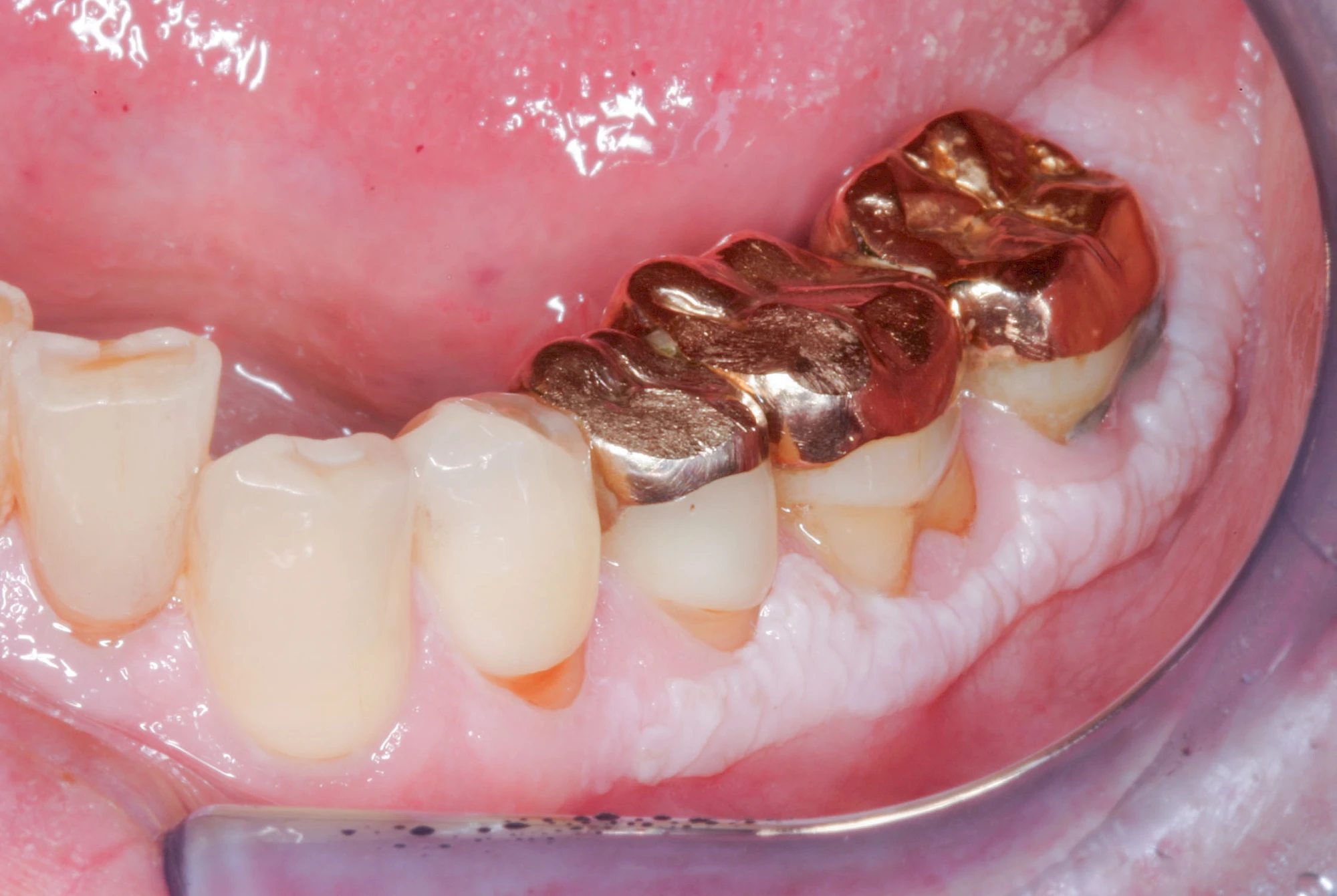 Häufig zu beobachten sind einzelne dunkle Flecken im Nahbereich der Zähne. Häufig handelt es sich dabei um Amalgam- oder Metall-Tätowierungen. Bei zahnärztlichen Behandlungen kann es zur "Versprengung" von Metall-Anteilen von Füllungen oder Kronen kommen. Diese lagern sich dann reizlos in die Schleimhaut ein.
