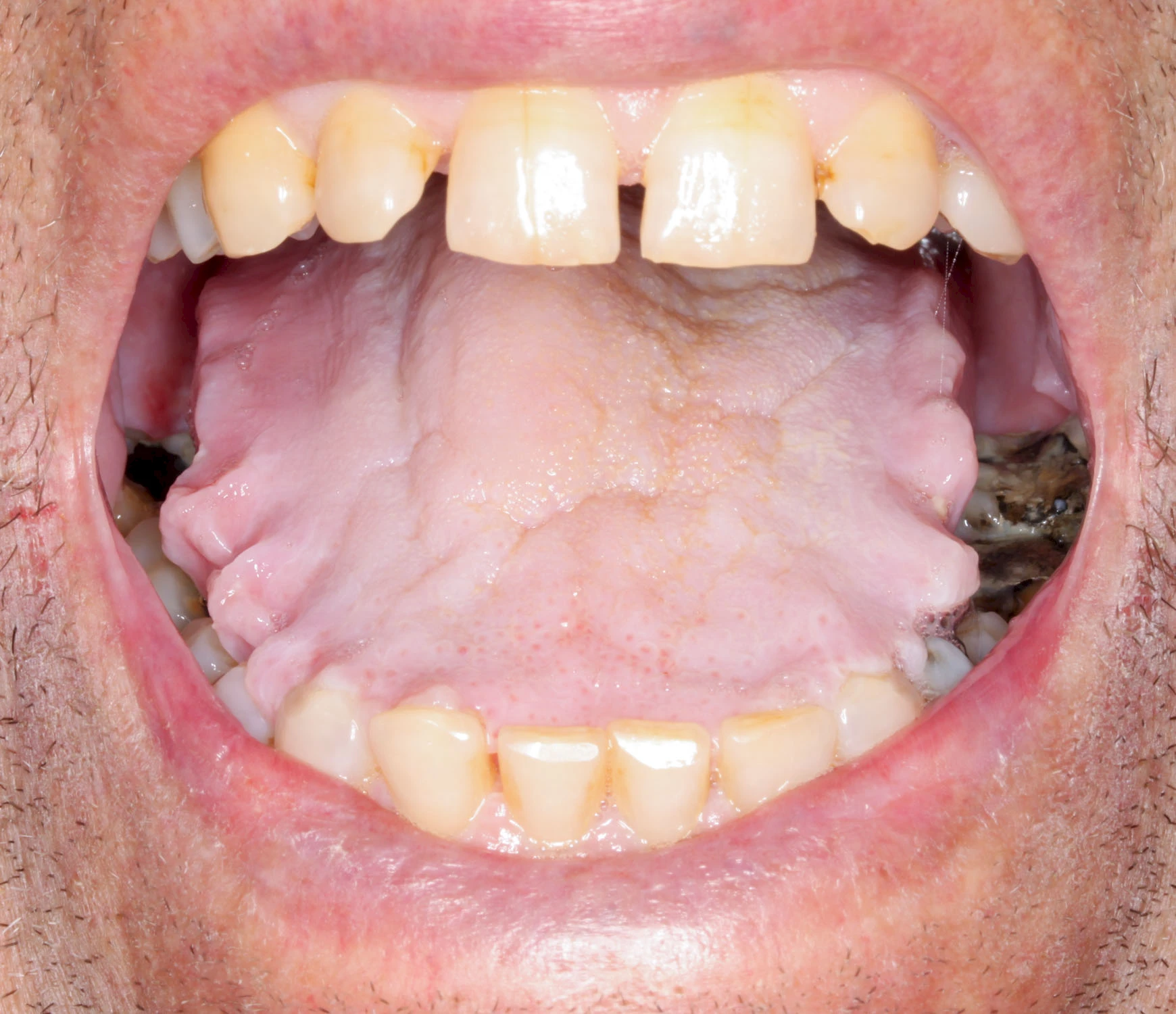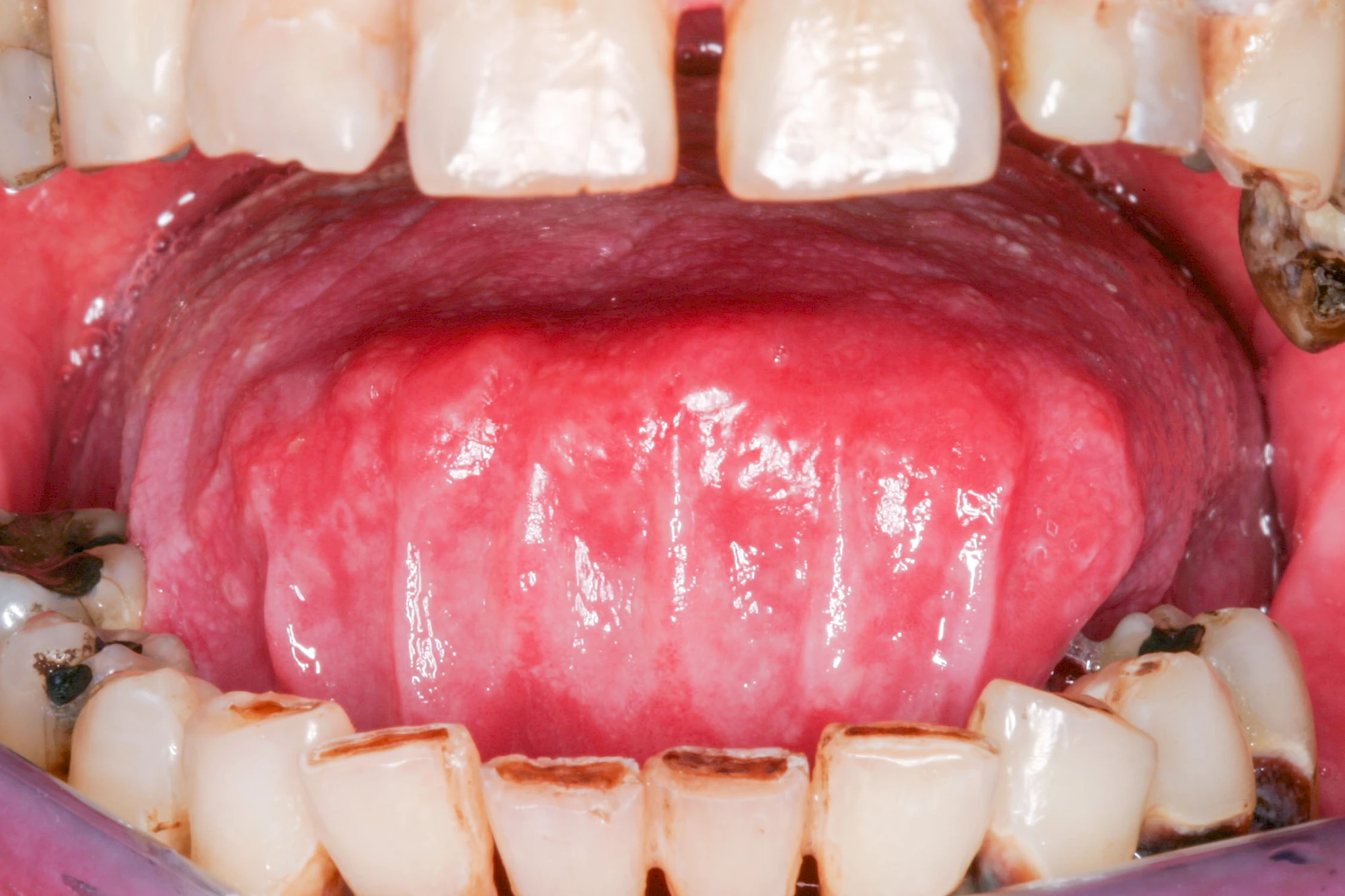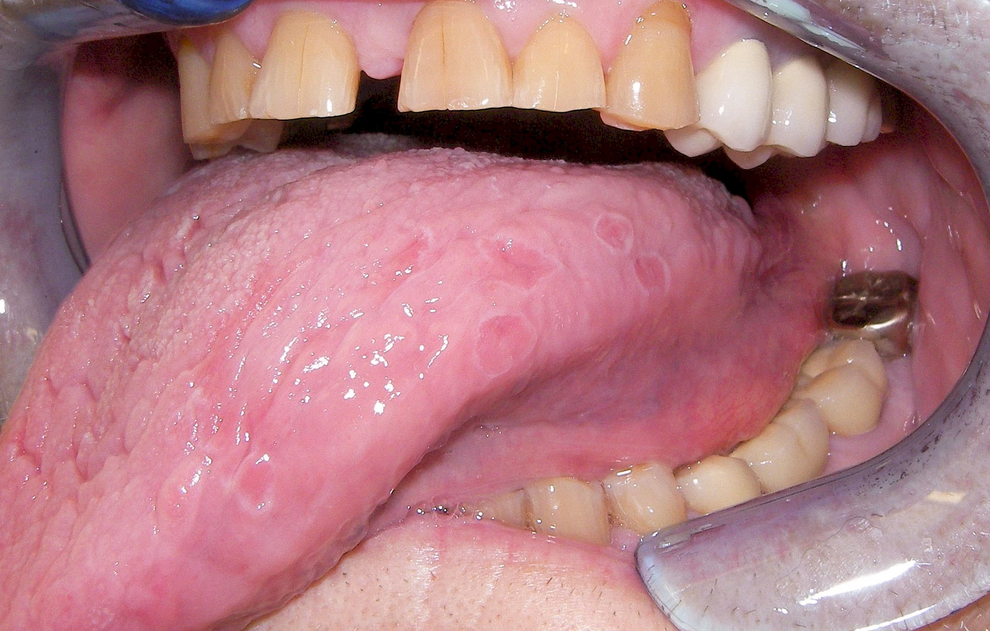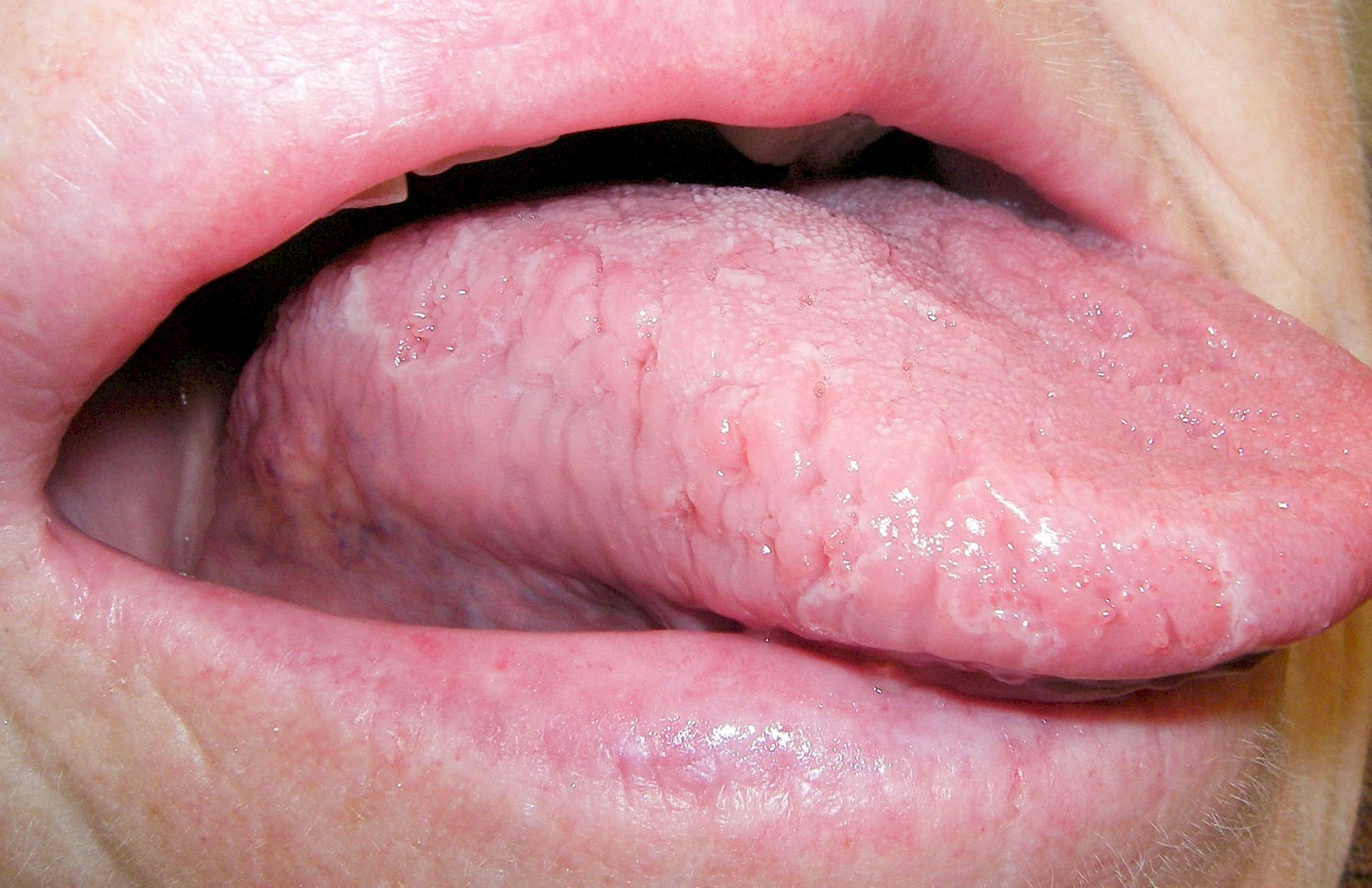 Neben abwischbaren Zungenbelägen kann die Zungenoberseite (Zungenrücken) Auffälligkeiten zeigen, die zwar keine (zahn)ärztliche Behandlung erfordern, die aber vor allem im Alter zunehmend ausgeprägt sein können und im Hinblick auf die Pflege besondere Aufmerksamkeit verdienen. In allen diesen Fällen sollte Zungenpflege gesondert in die Mundpflege einbezogen werden.