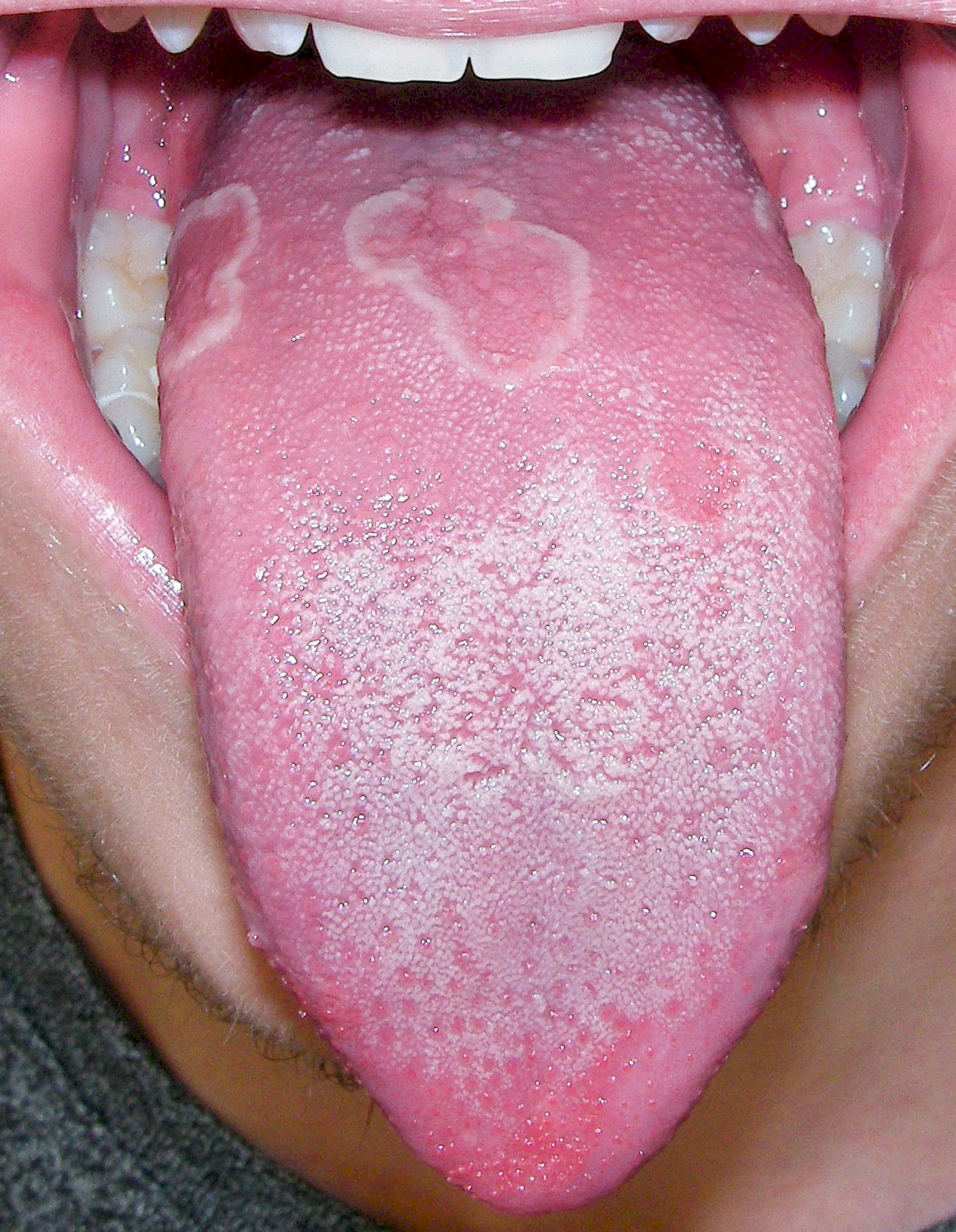 Die Landkartenzunge (Lingua geographica – Exfoliatio areata linguae) ist gekennzeichnet durch rötliche oder gräuliche scharf abgegrenzte landkartenartige Flecken. Manche Menschen klagen über Zungenbrennen. Dabei handelt es sich im Sinne einer Konstitutionsanomalie um eine gutartige, entzündliche Veränderung und Abstoßung der fadenförmigen Papillen (Papillae filifiormes) auf der Zungenoberfläche. Zum Teil bildet sich die Veränderungen innerhalb von Monaten wieder von selbst zurück.