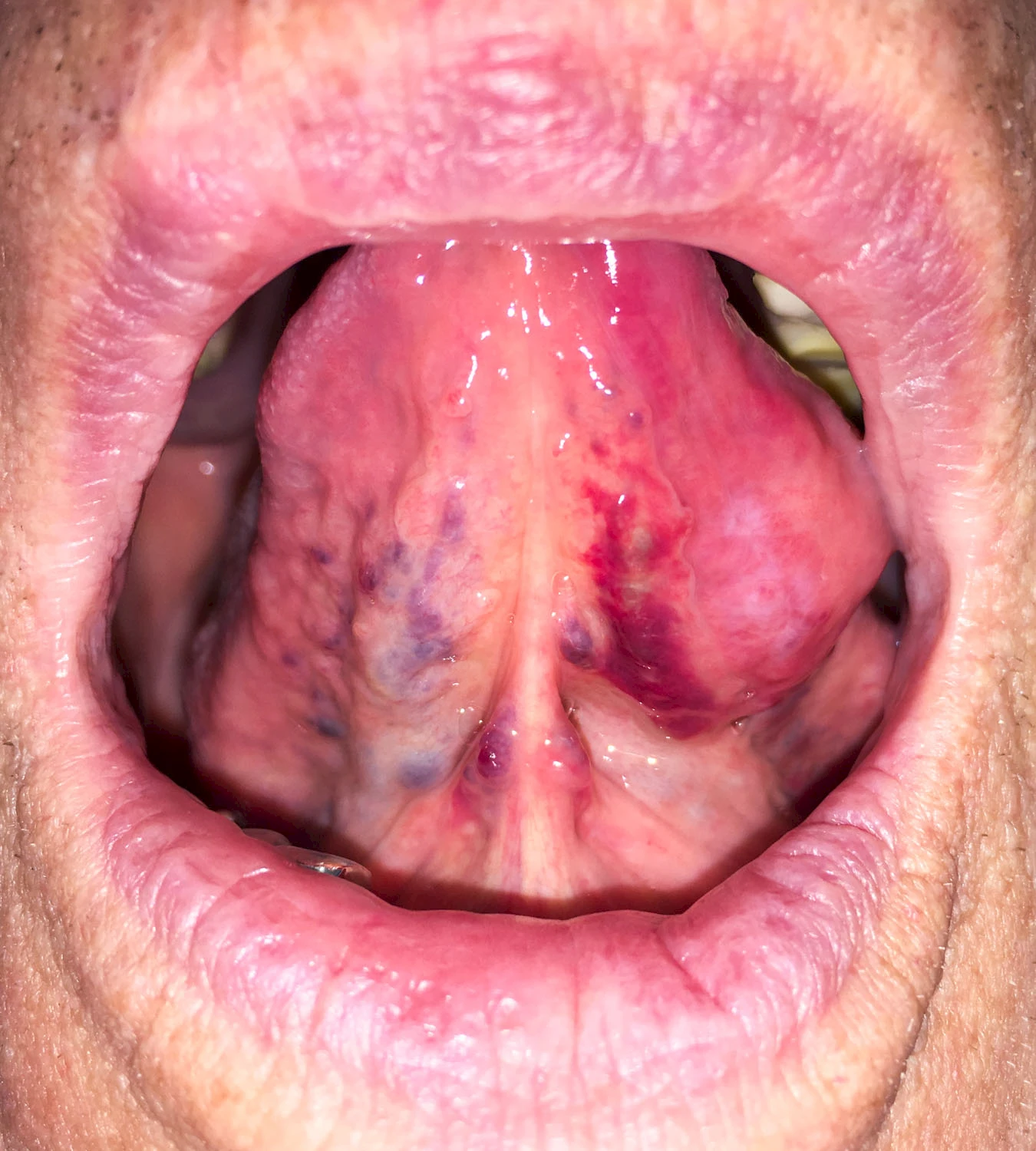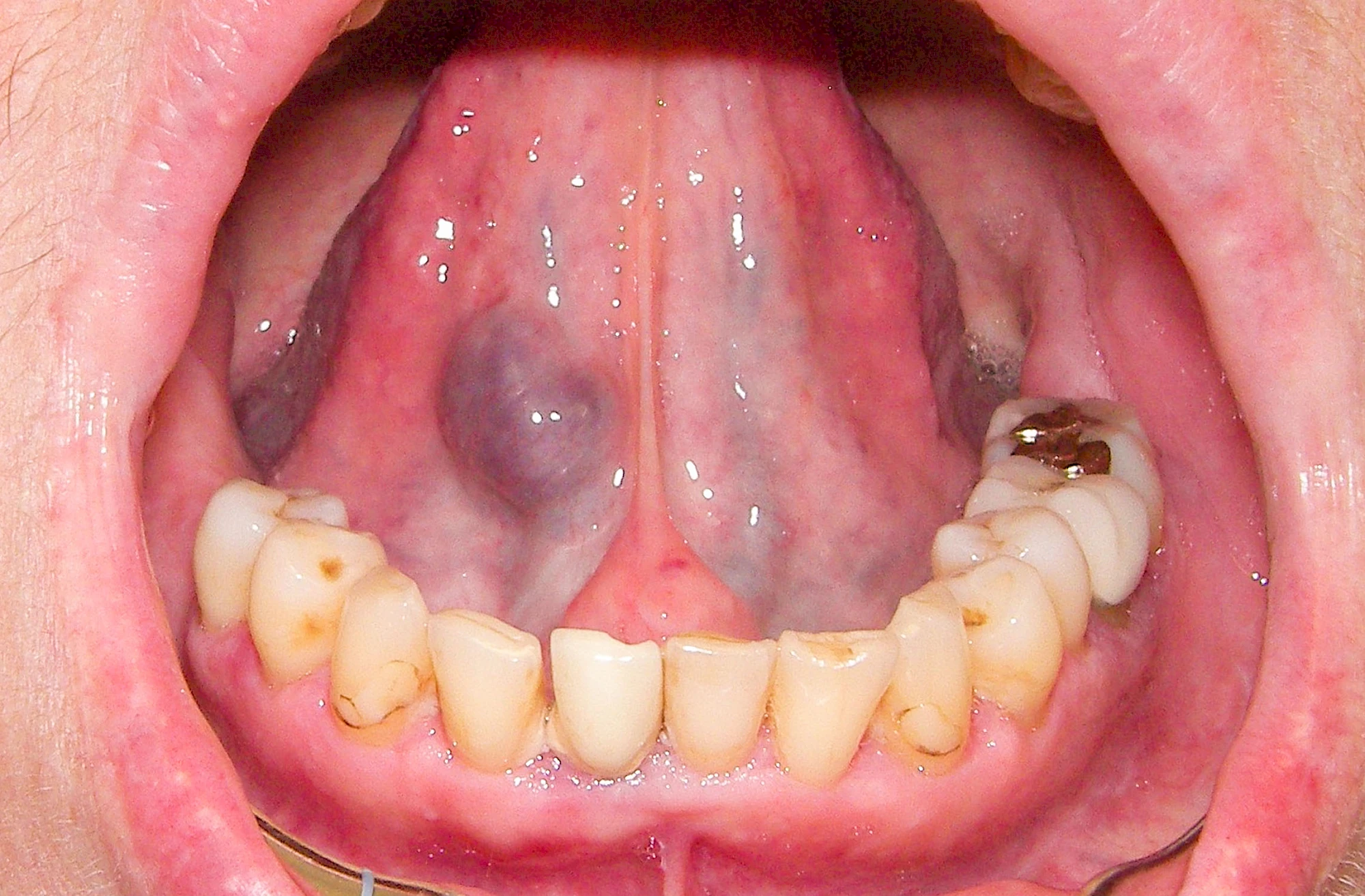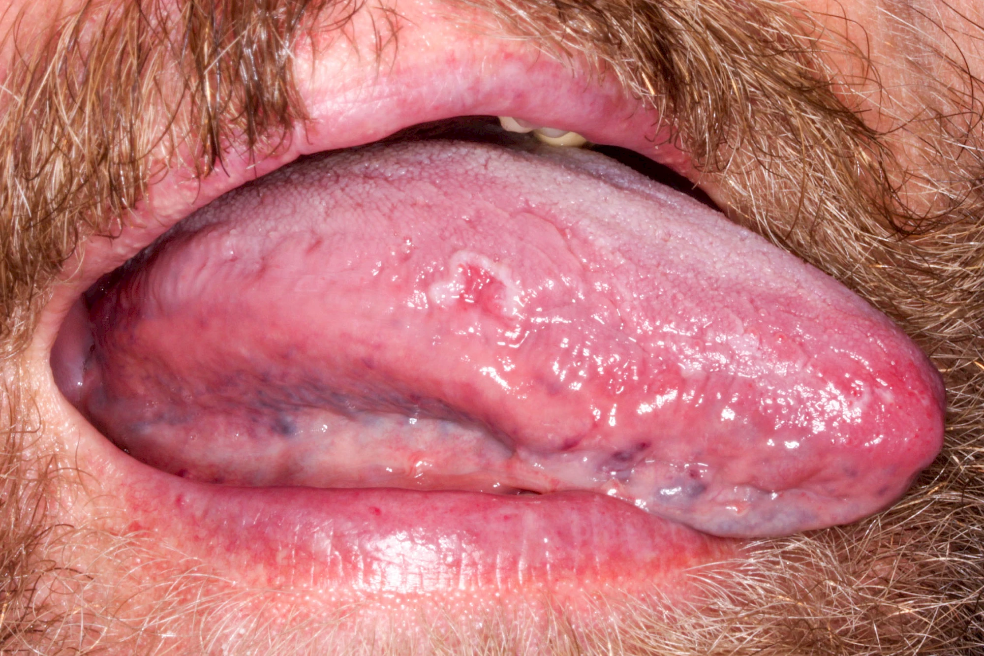 Besonders häufig läßt sich eine starke Gefäßzeichnung unter der Zunge beobachten.