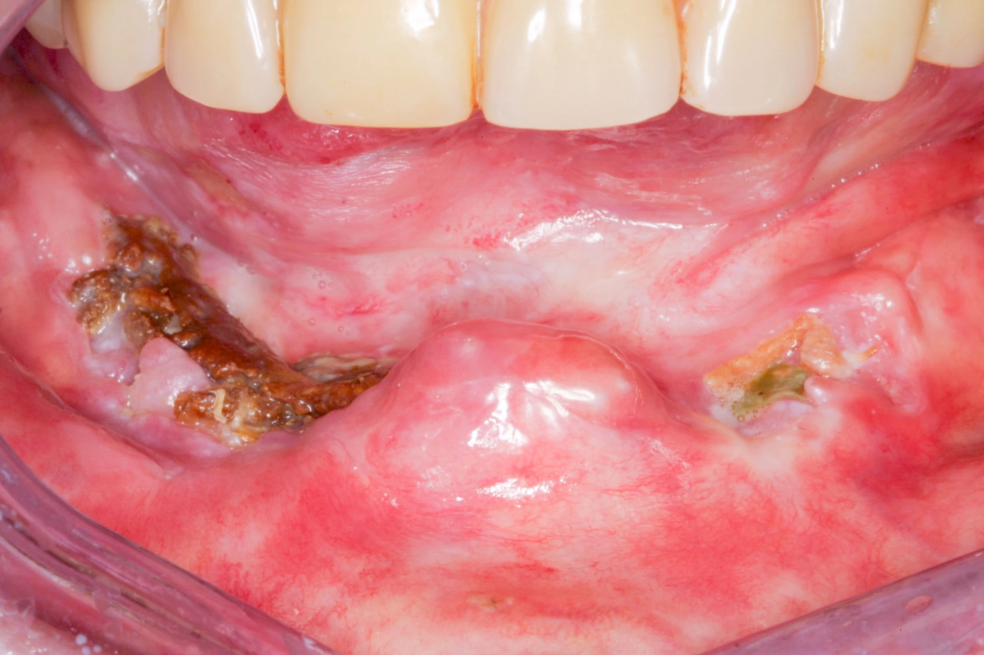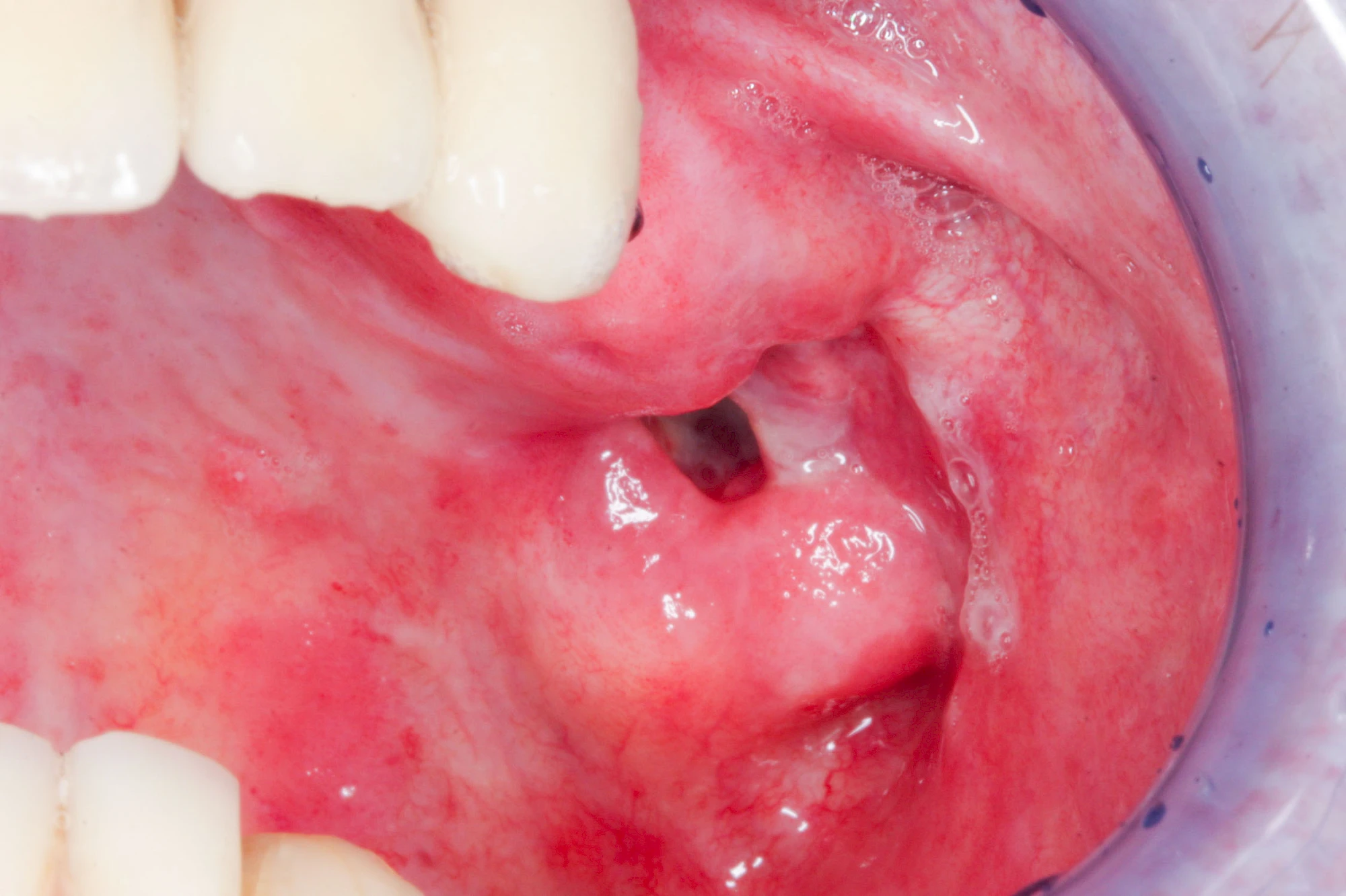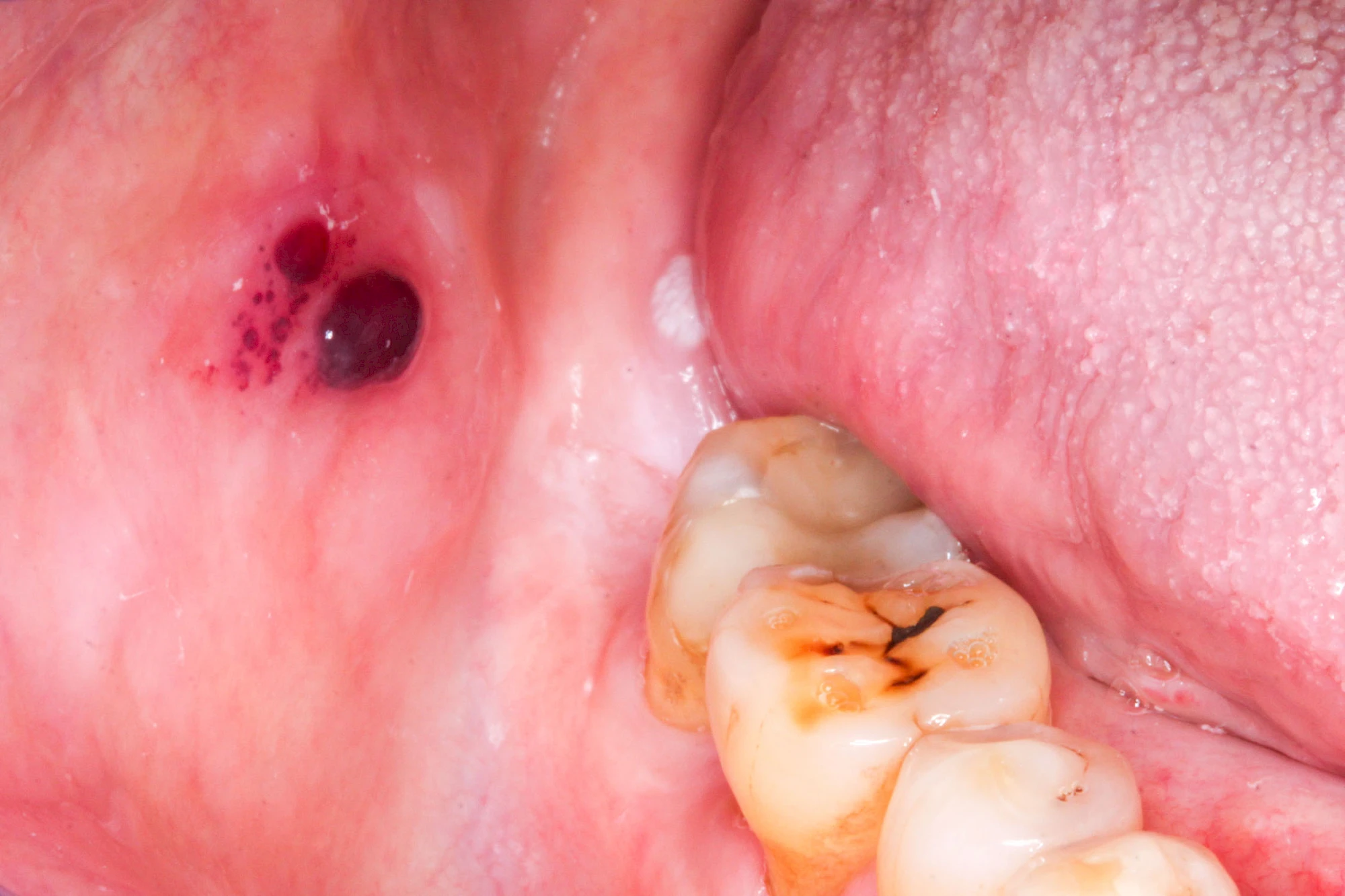 Nach operativen Eingriffen im Bereich der Mundhöhle (Zahn ziehen "Extraktion", Schleimhautprobenentnahmen "Biopsien" oder Tumoroperationen) kann es zu Wundheilungsstörungen mit Schwellungen, Rötungen und Nachblutungen, Sprach- und Kaufunktionsstörungen kommen. Einzelne Gesichtsbereiche können sich warm anfühlen und in seltenen Fällen kann es zu Fieber und reduziertem Allgemeinzustand kommen.