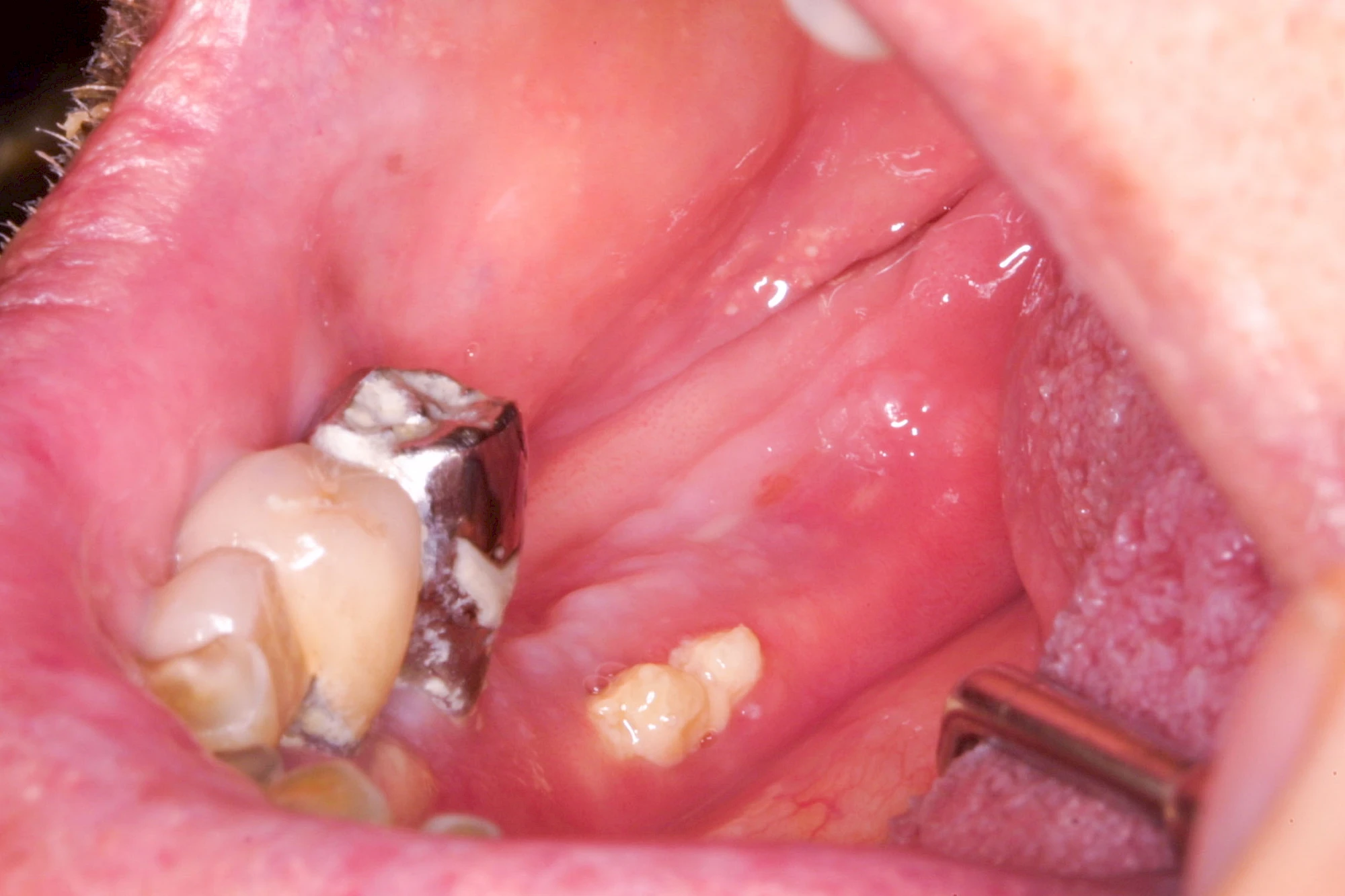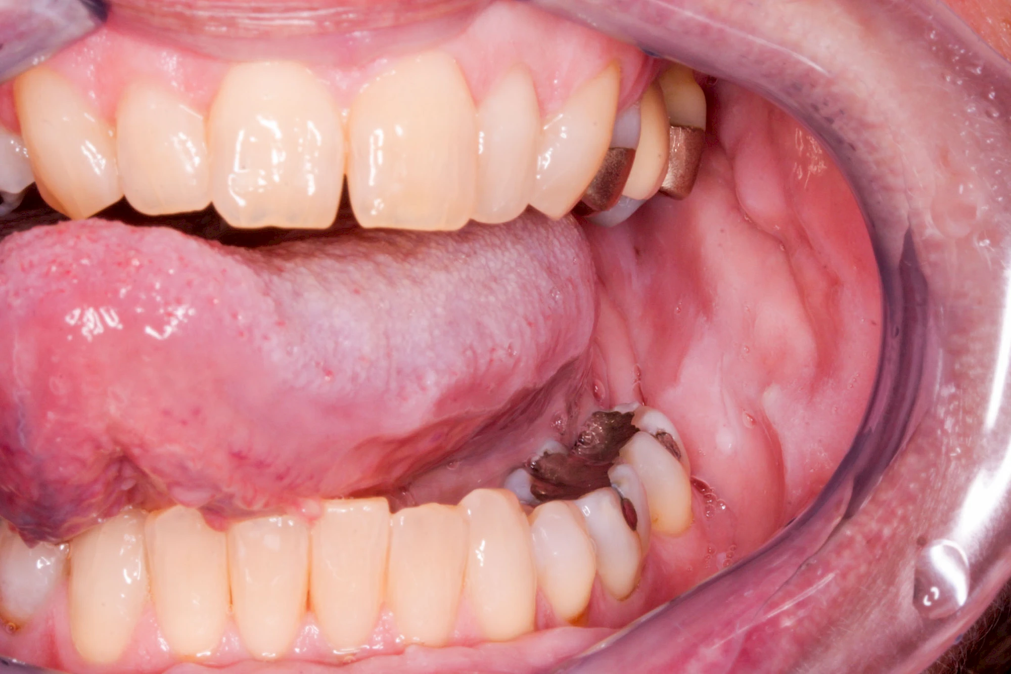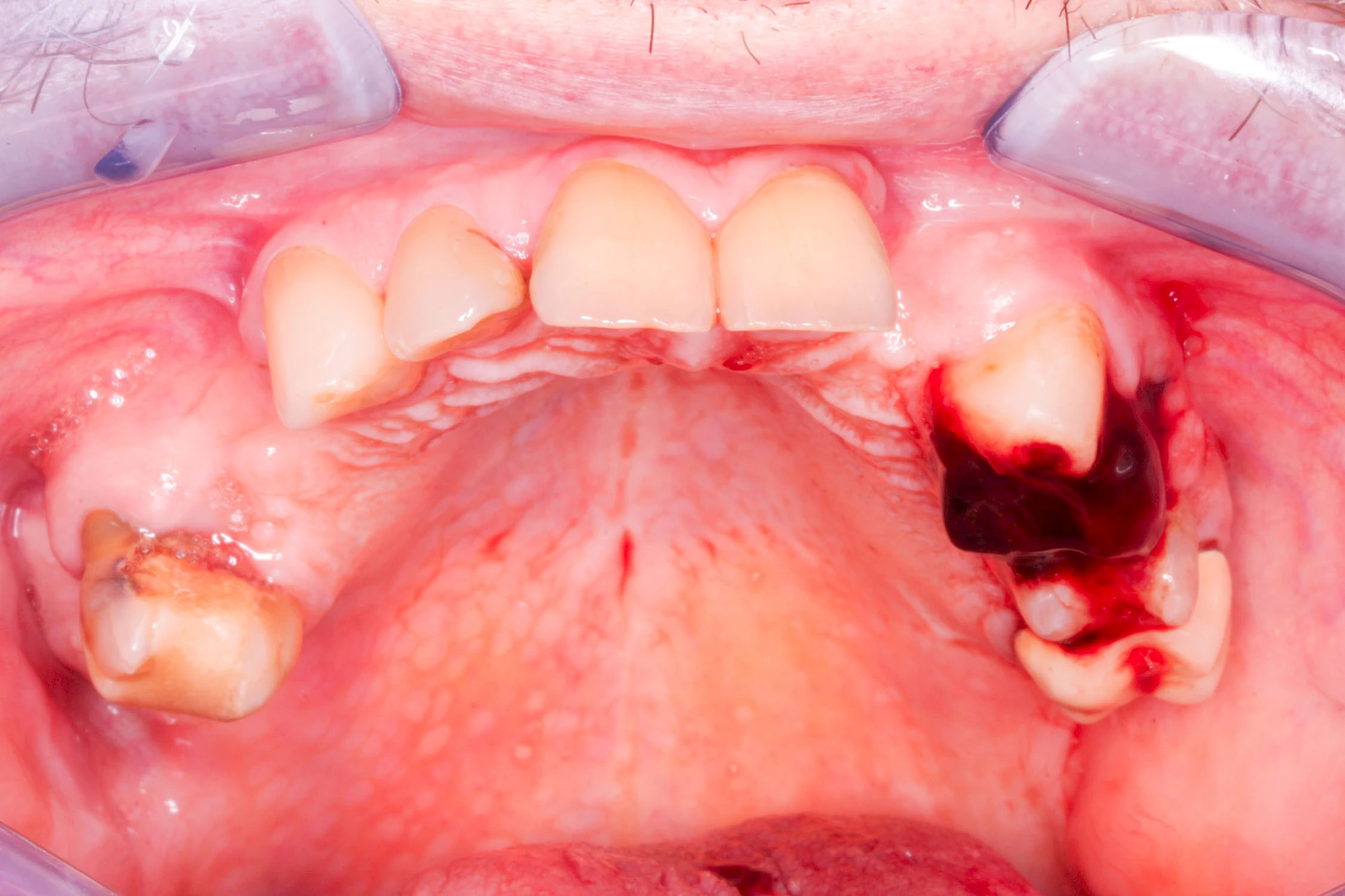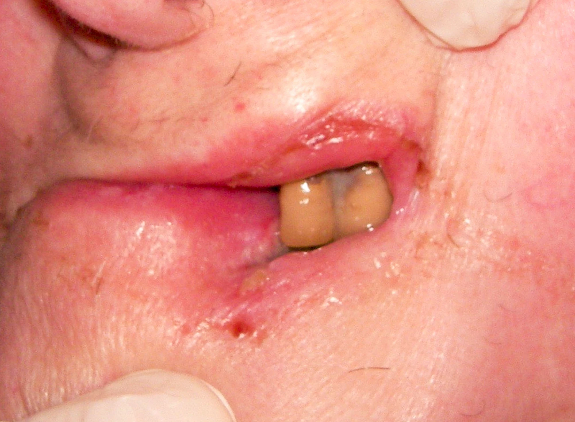 Nach operativen Eingriffen im Bereich der Mundhöhle (Zahn ziehen "Extraktion", Schleimhautprobenentnahmen "Biopsien" oder Tumoroperationen) kann es zu Wundheilungsstörungen mit Schwellungen, Rötungen und Nachblutungen, Sprach- und Kaufunktionsstörungen kommen. Einzelne Gesichtsbereiche können sich warm anfühlen und in seltenen Fällen kann es zu Fieber und reduziertem Allgemeinzustand kommen.