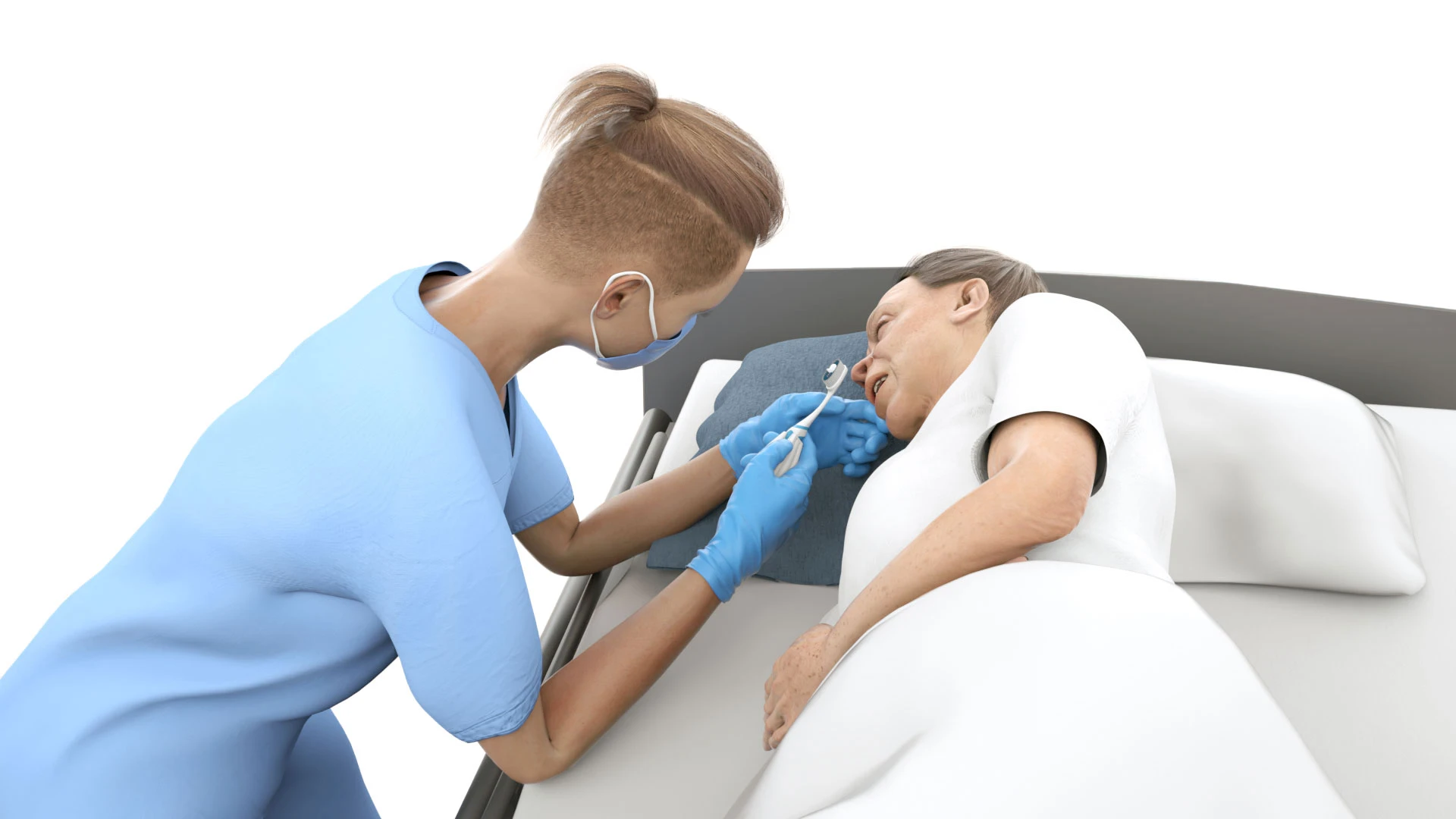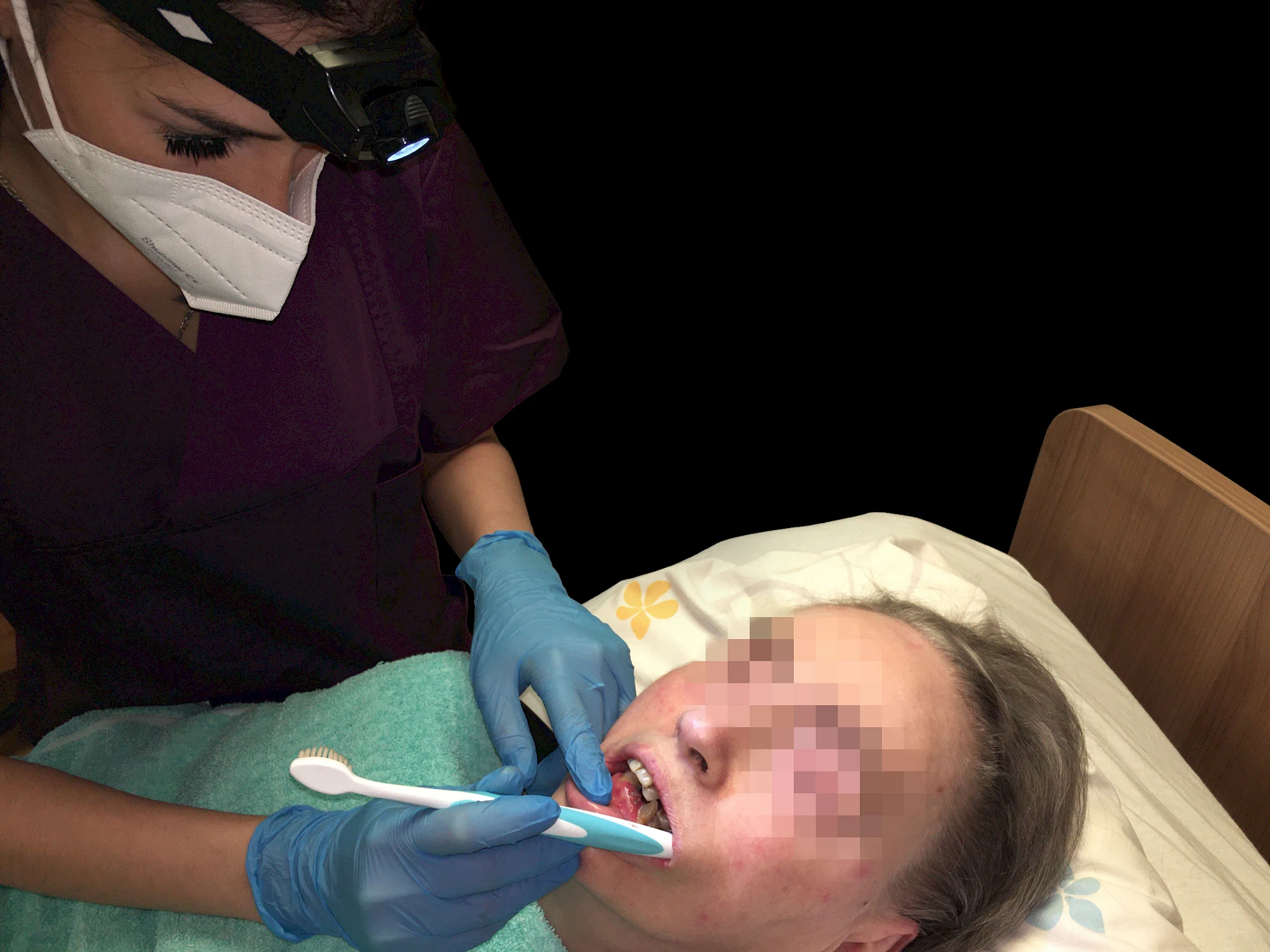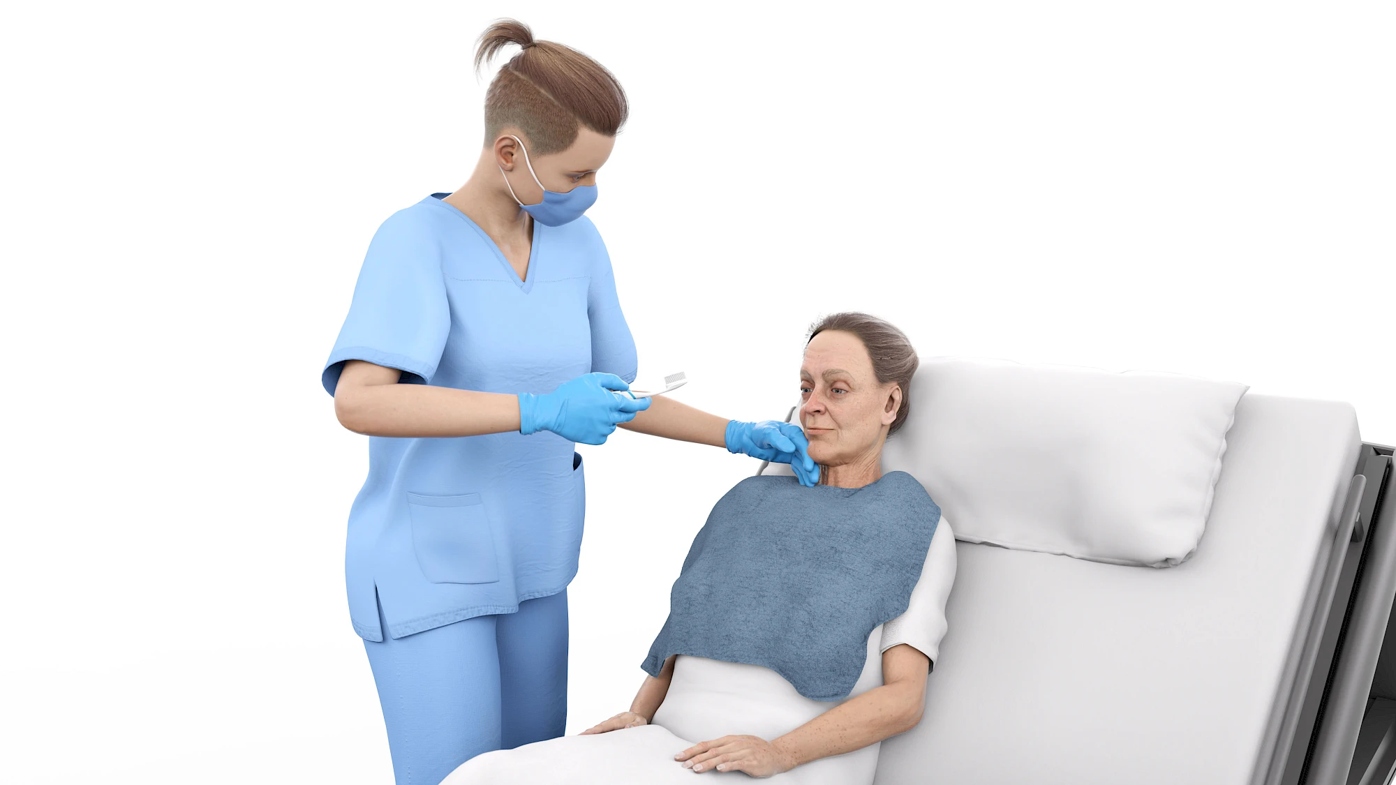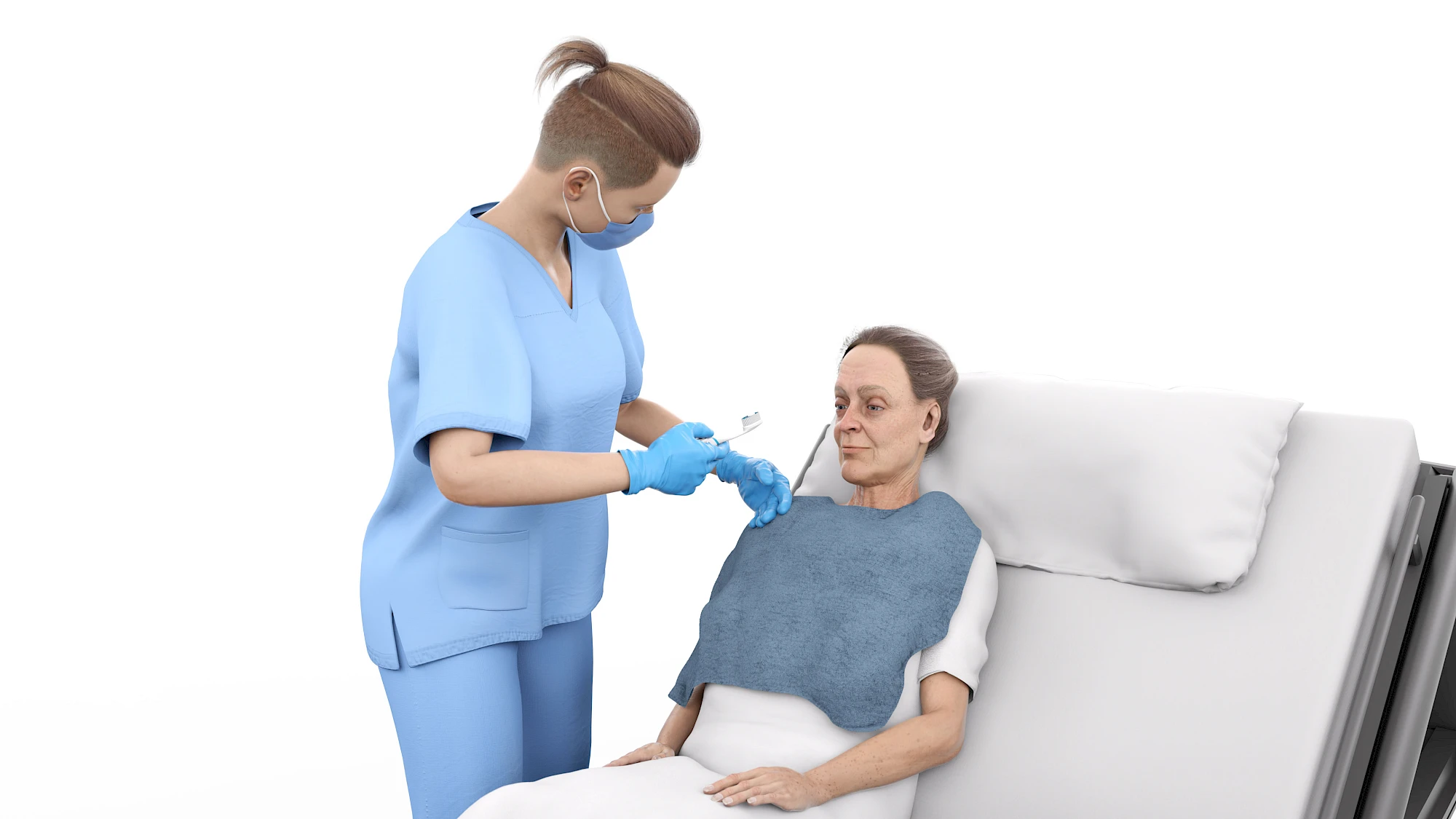 Ist die Mundpflege z. B. aufgrund der eingeschränkten Mobilität nicht sitzend am Waschbecken möglich, so kann diese alternativ auch im Bett liegend erfolgen.